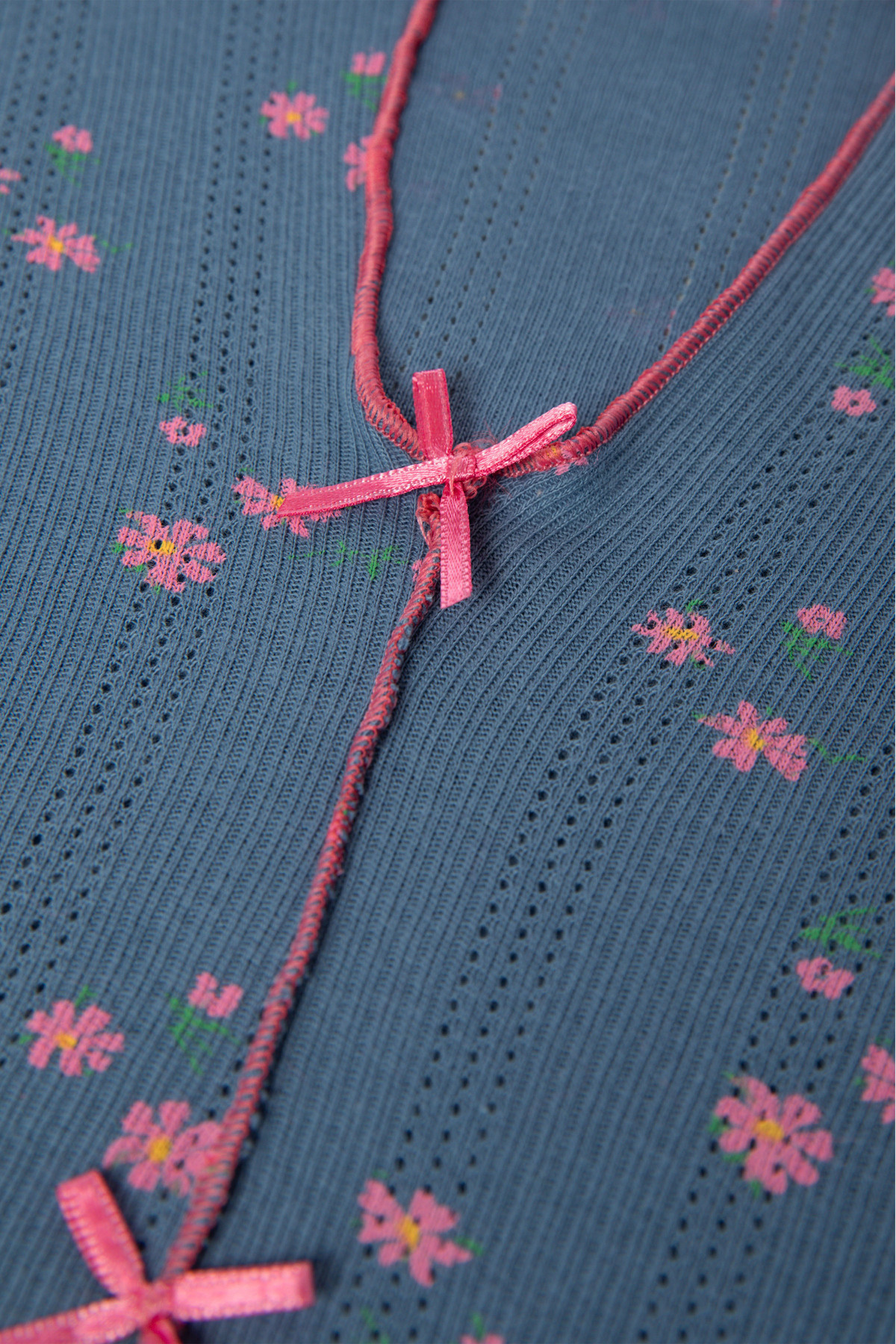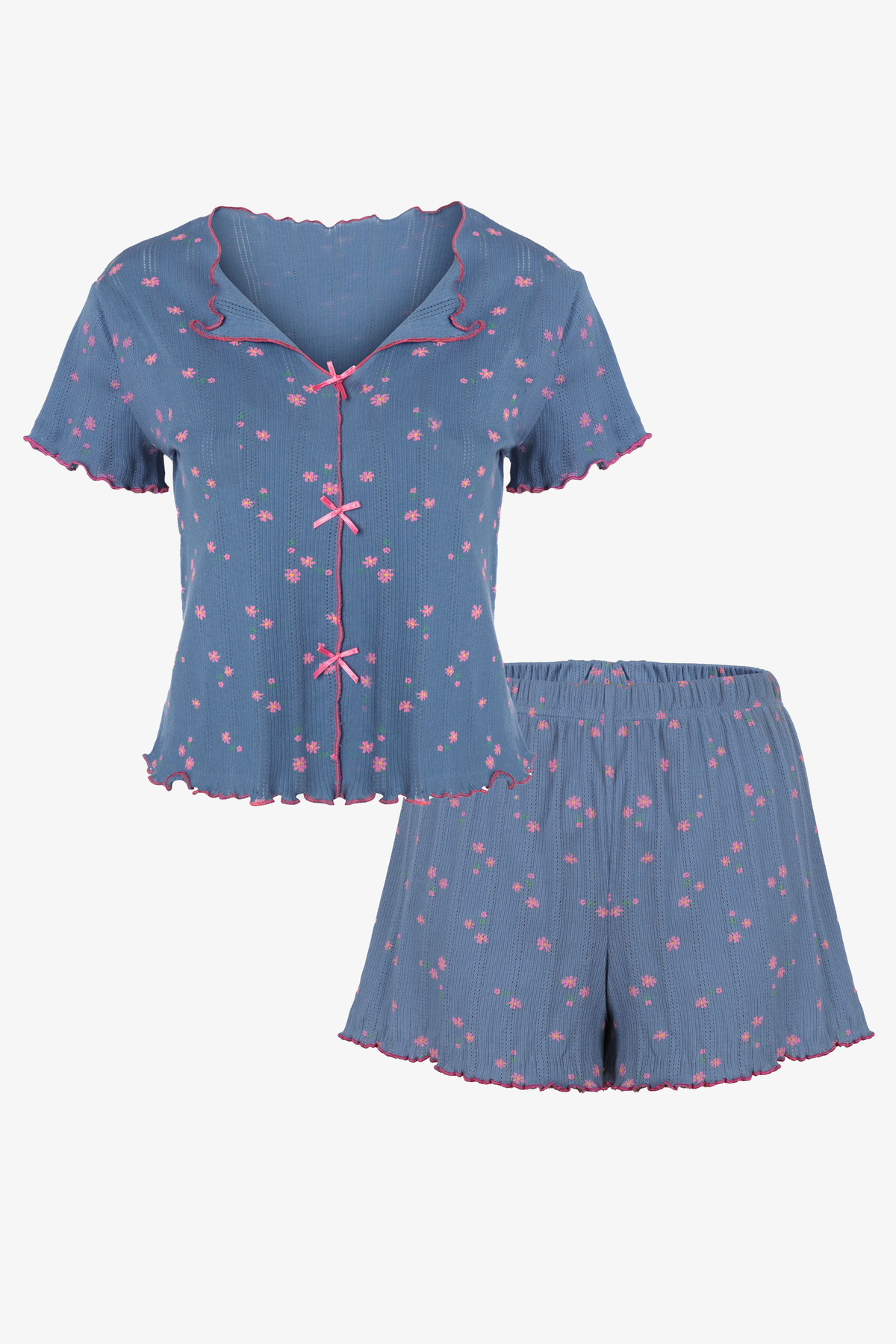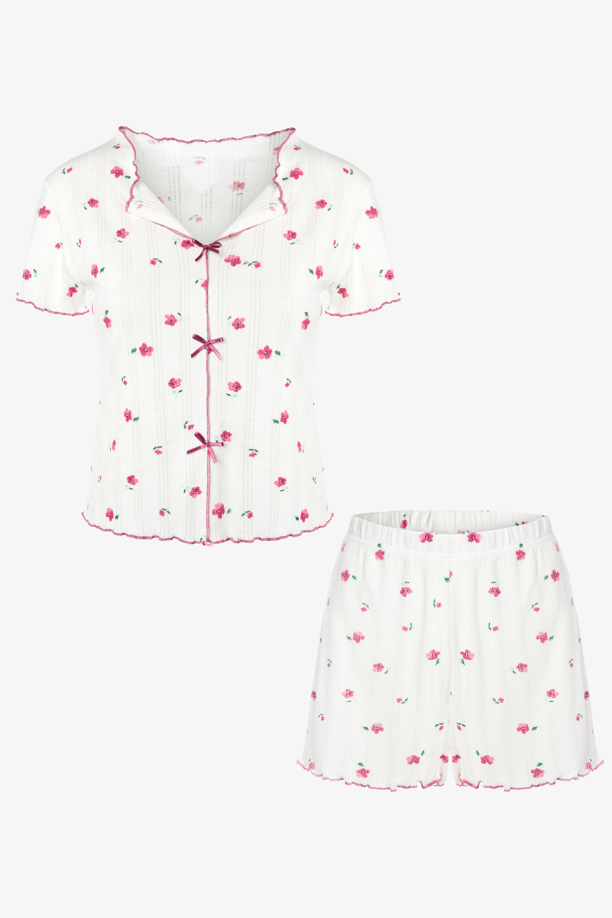 Evde de şıklığından ödün vermeyen, aynı zamanda rahatlığına düşkün kadınlar için özel olarak tasarlanan bu pijama takımı, rüyalarınızı güzelleştirecek! Yumuşacık kaşkorse kumaşı, çarpıcı çiçek desenleri ve şık fiyonk detaylarıyla hem rahat hem de feminen bir görünüm sunuyor.