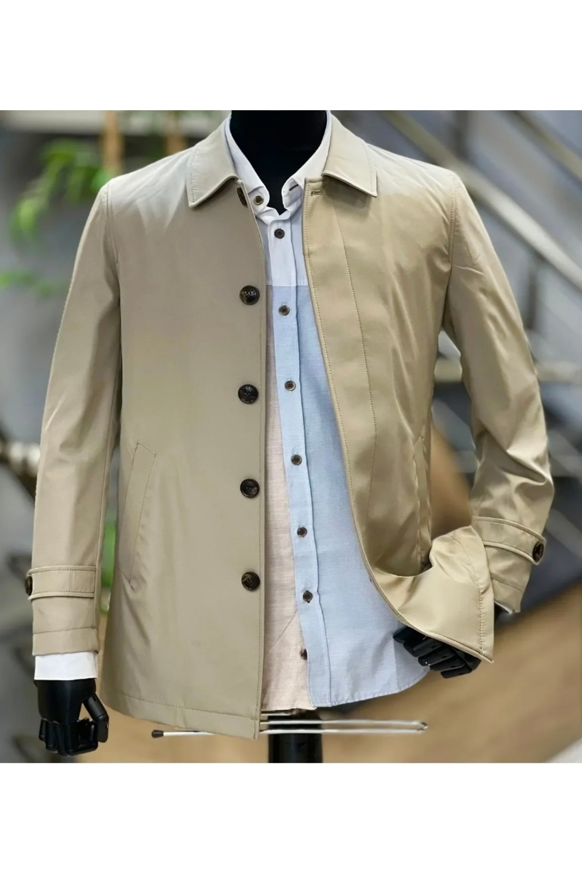 - İnce bej rengi ile şıklığı ve rahatlığı bir arada sunan trençkot, günlük kullanım için idealdir.