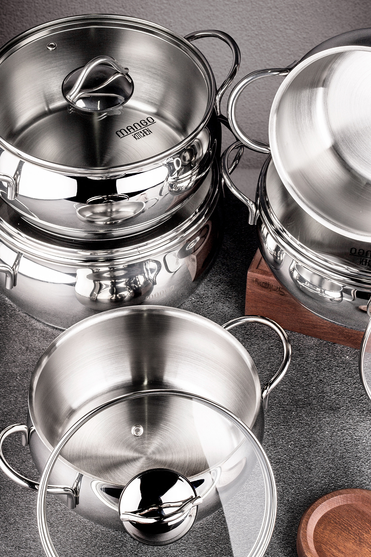 Mango Kitchen Dara Steel - 10 Parça Çelik Tencere Seti Paslanmaz Çelik Master Steel 18/10 Çelik