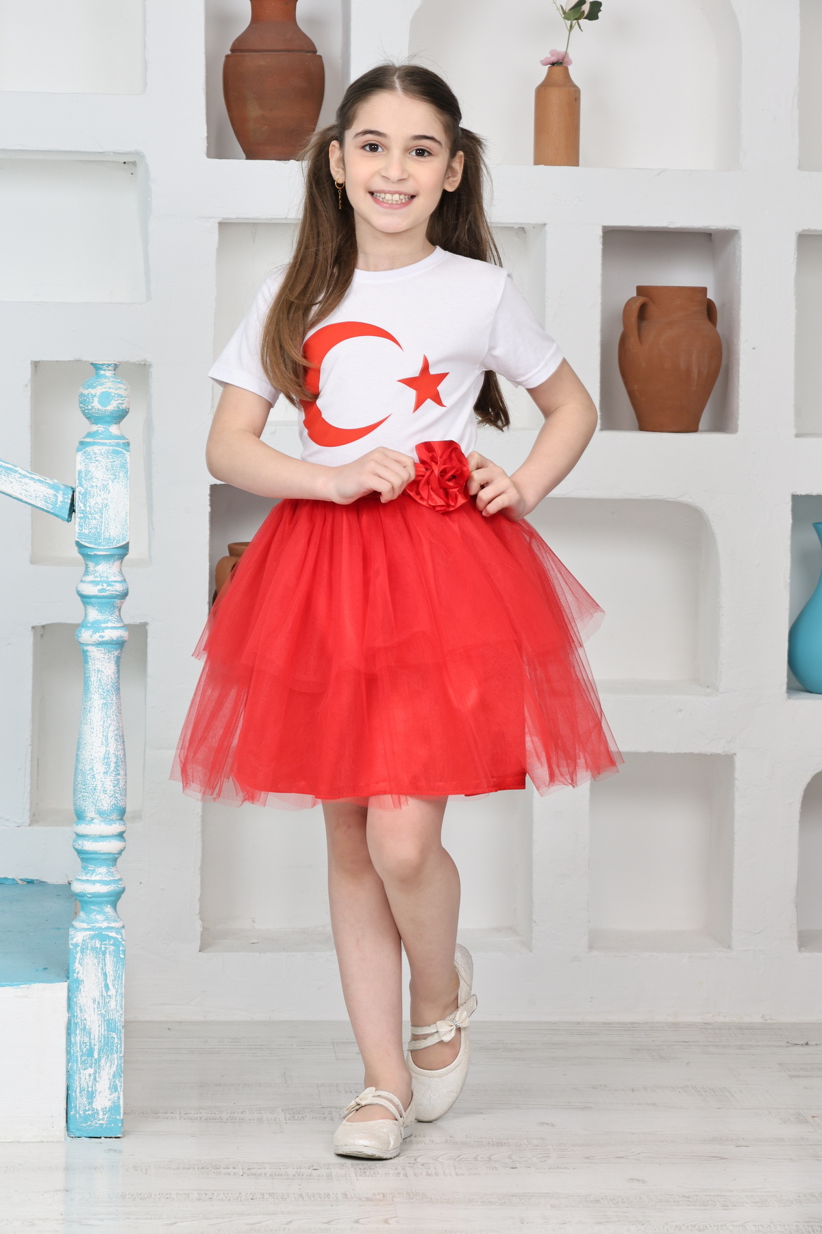 - 23 Nisan Ulusal Egemenlik ve Çocuk Bayramı ile 29 Ekim Cumhuriyet Bayramı gibi özel günlerde çocukların şıklığını tamamlayacak etek ve body kombinasyonu.