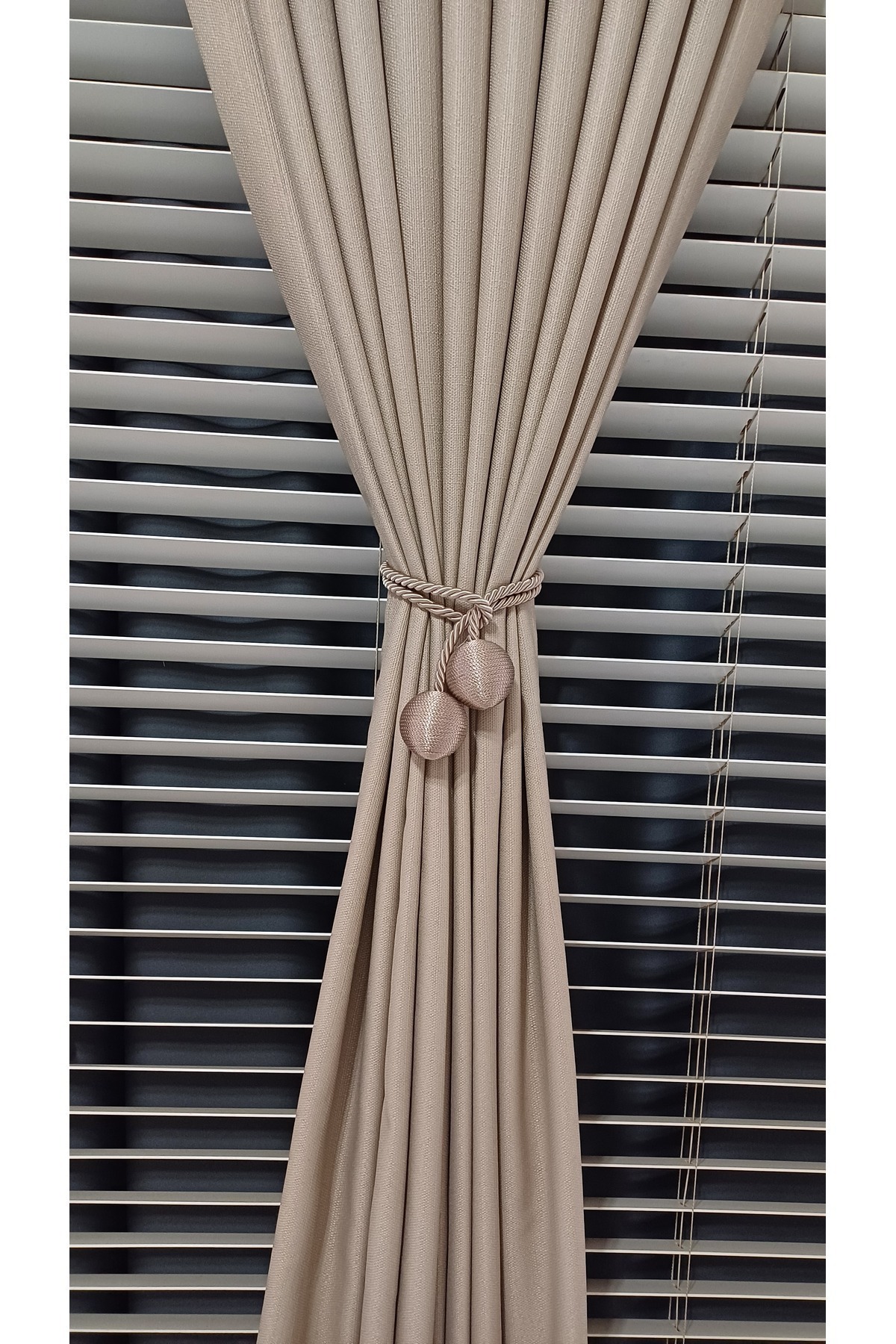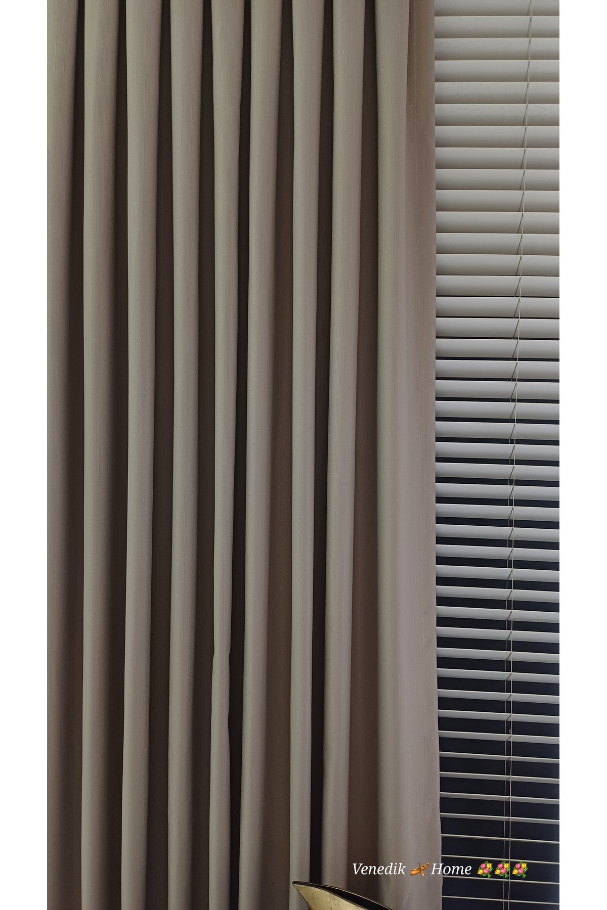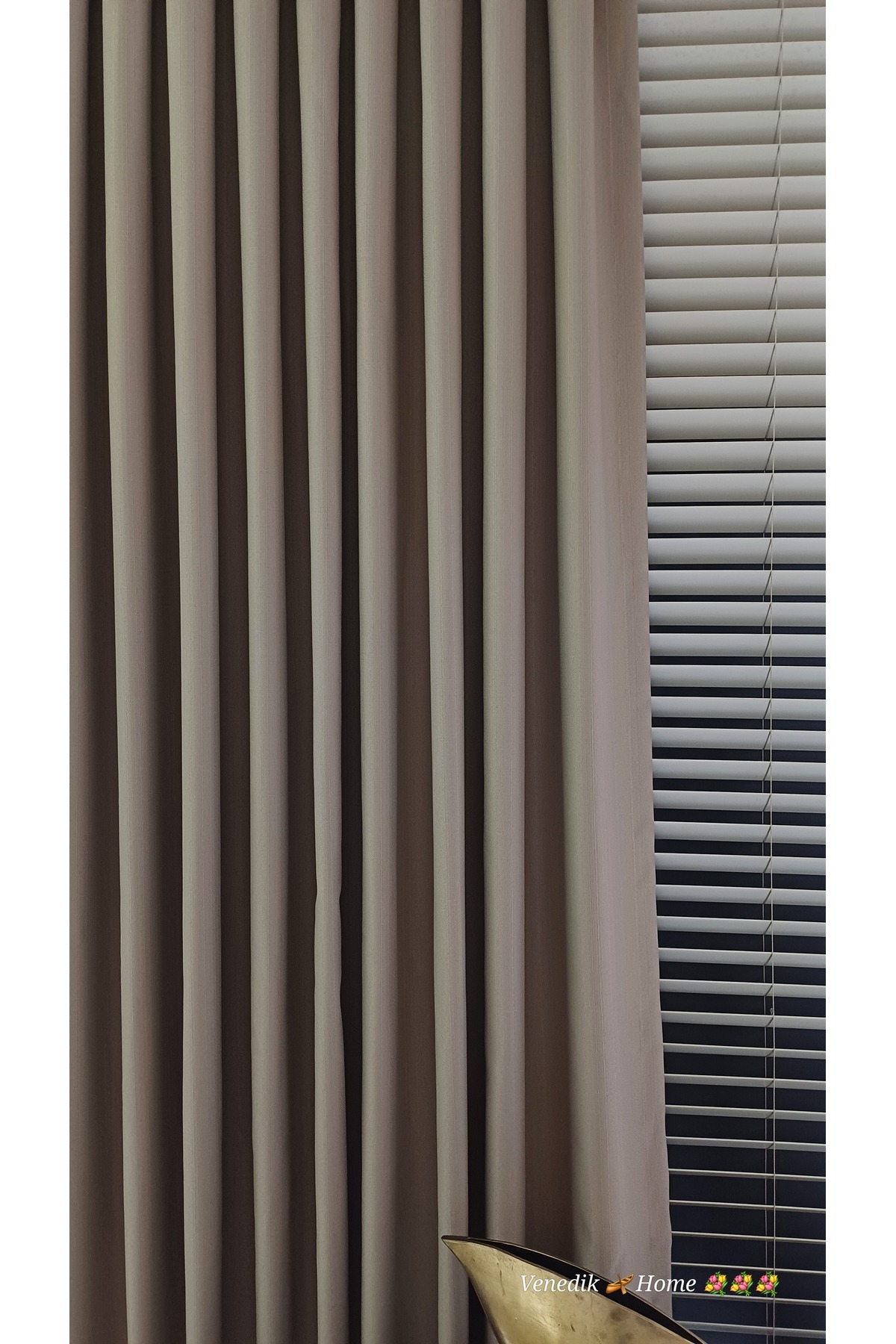 Koyu Bej Renk Milas Keten Fon Perde Pilesiz Ekstrafor Büzgülü Özel Dikim (2 TOPLU AKSESUARI HEDİYE)
