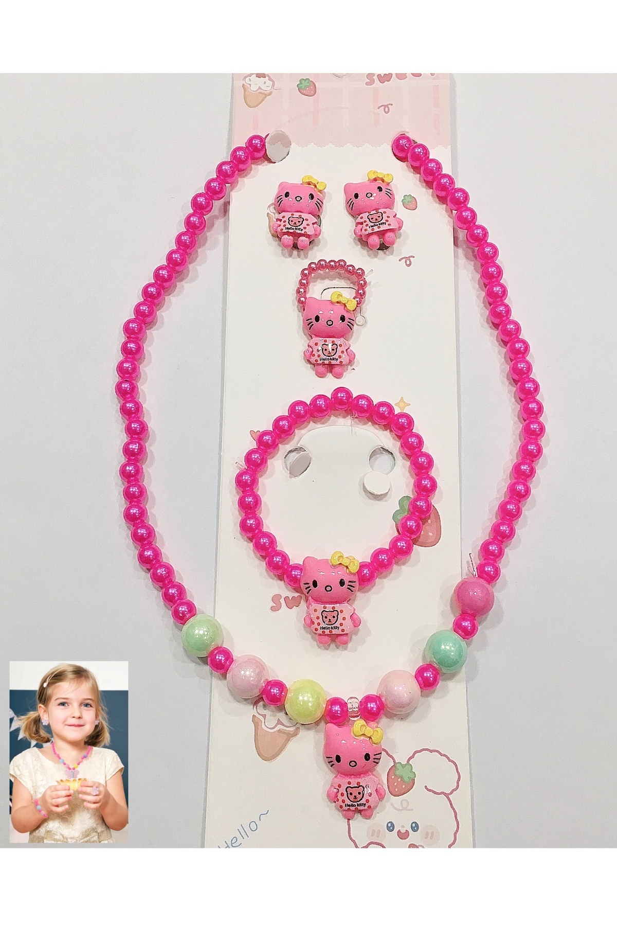 - Çocukların hayal gücünü geliştiren boncuk kolye, küpe, yüzük ve bileklikten oluşan 4'lü set.