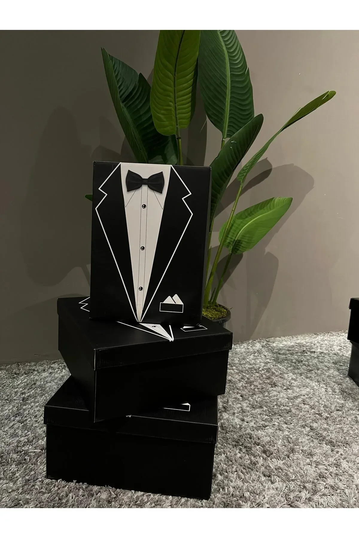 • Firmamızın üretmiş olduğu damat kutusu 3 parça dan oluşmaktadır.3 adet 34x28x13cm, boyutlarında kutu gönderim sağlanır.