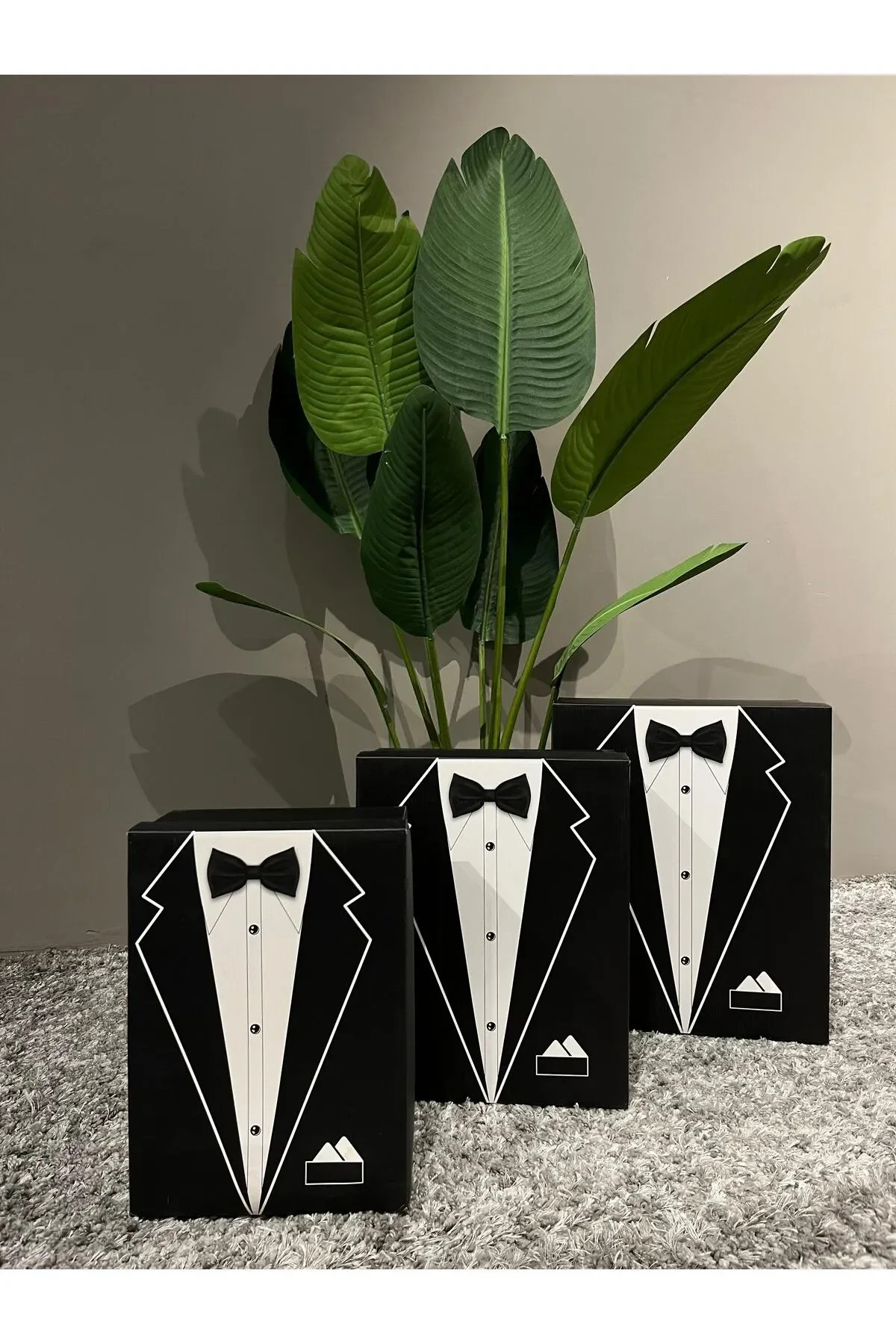 3 Lü Damat Kutusu Orta Boy Bohça Kutusu 3 Adet Orta Boy Kutu Çeyiz Damat Bohça Kutusu 34x28x13cm