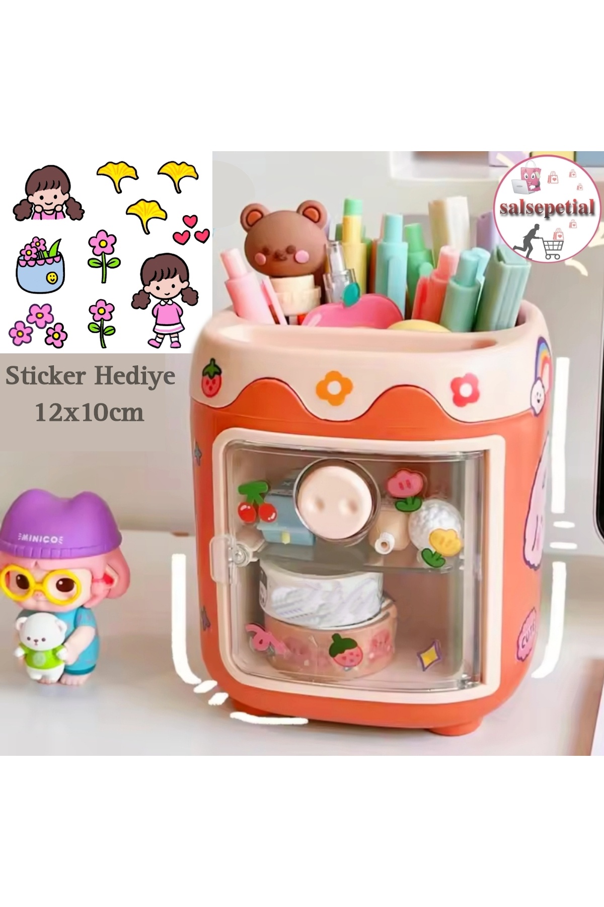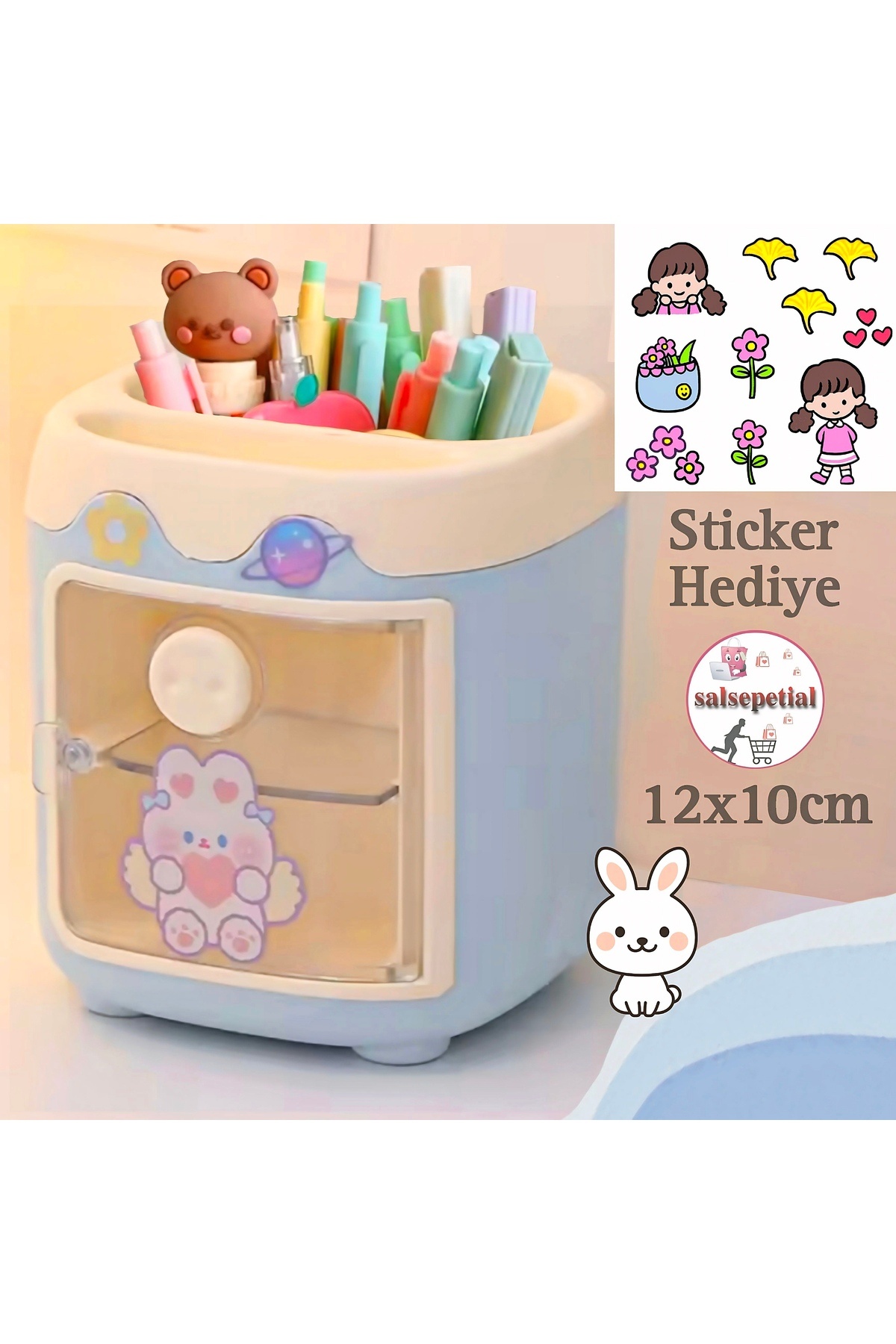 Kawaii Tavşan Kalem Kutusu Masaüstü Kalemlik Kawaii Tavşan Kapaklı Kalem Kutusu Masa Üstü Organizer 3 çekmeceli 12x10 cm boyundadır.