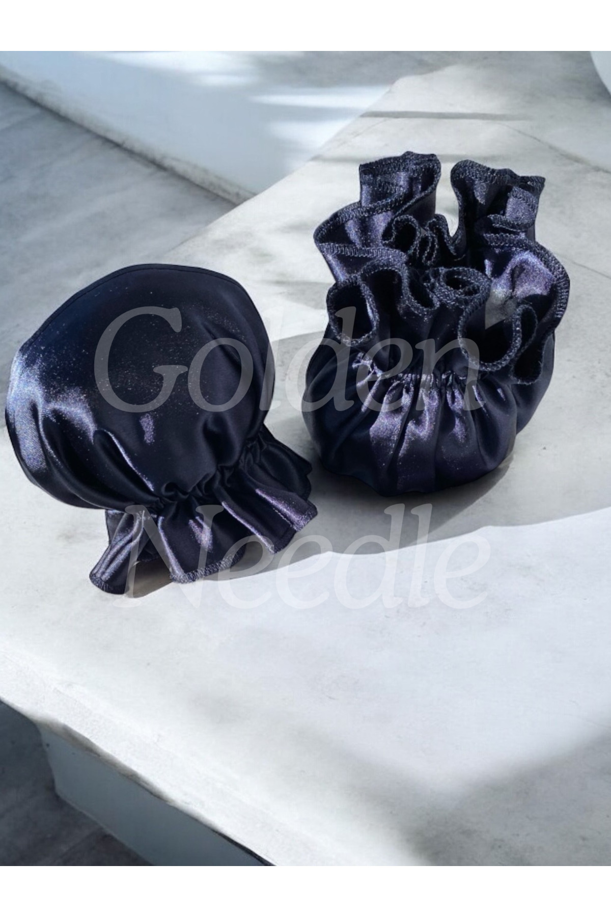 İpek Saten Saç Sosisi Bonesi Çift Taraflı 1 Adet Lacivert Küçük Bone