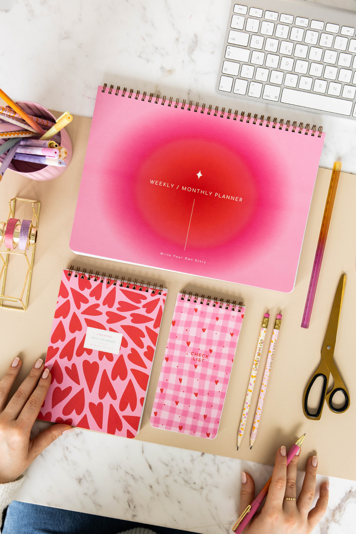Paperora Haftalık ve Günlük 3’lü Masaüstü Süresiz Planlayıcı Set – Aura/Kalp