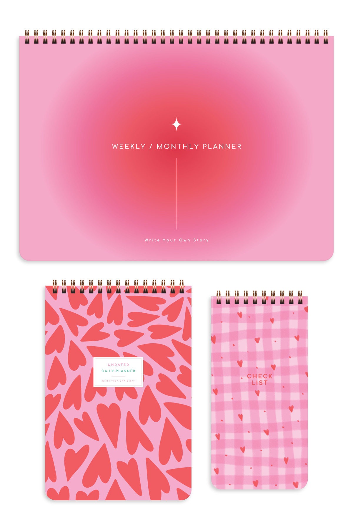 A4 Haftalık ve Günlük 3’lü Masaüstü Süresiz Planlayıcı Set – Aura/Kalp
