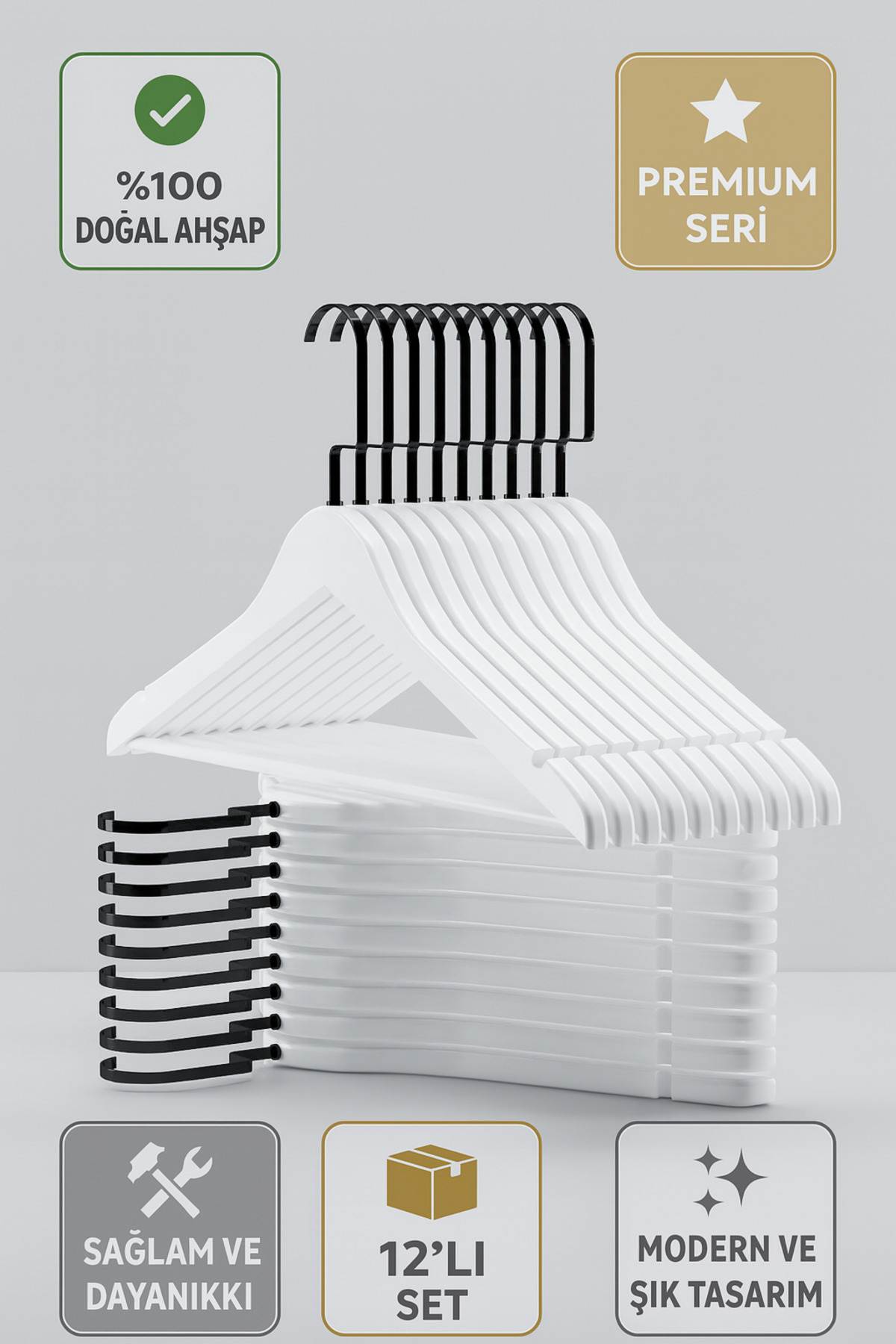 Beyaz lüks ahşap askı elbise pantolon etek gömlek bluz giysi kıyafet askısı