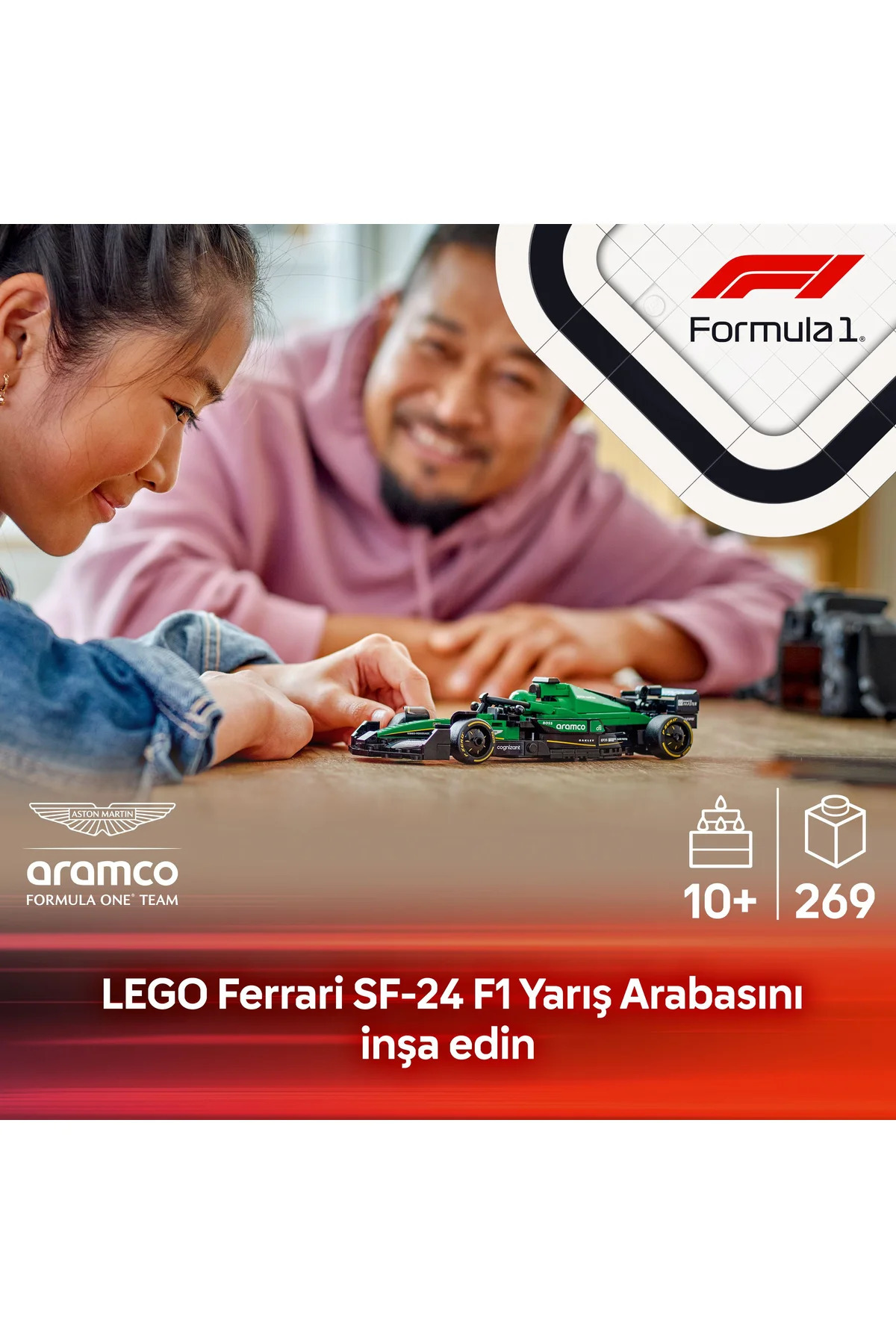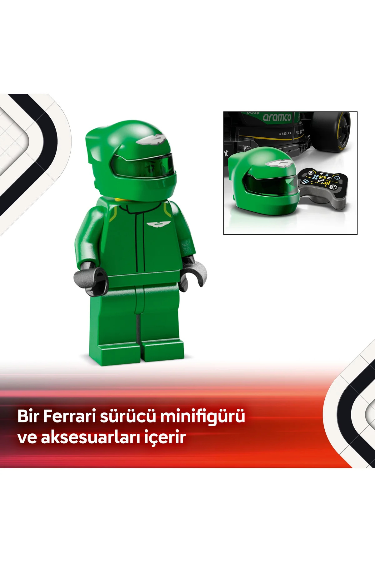 Inspired by the real-life car that competed in the 2024 Formula 1 World Championship, this set features authentic design elements, such as a rear wing, sponsor stickers, larger rear tires printed with 'Pirelli', and a cockpit that opens by lifting the Halo safety bar.