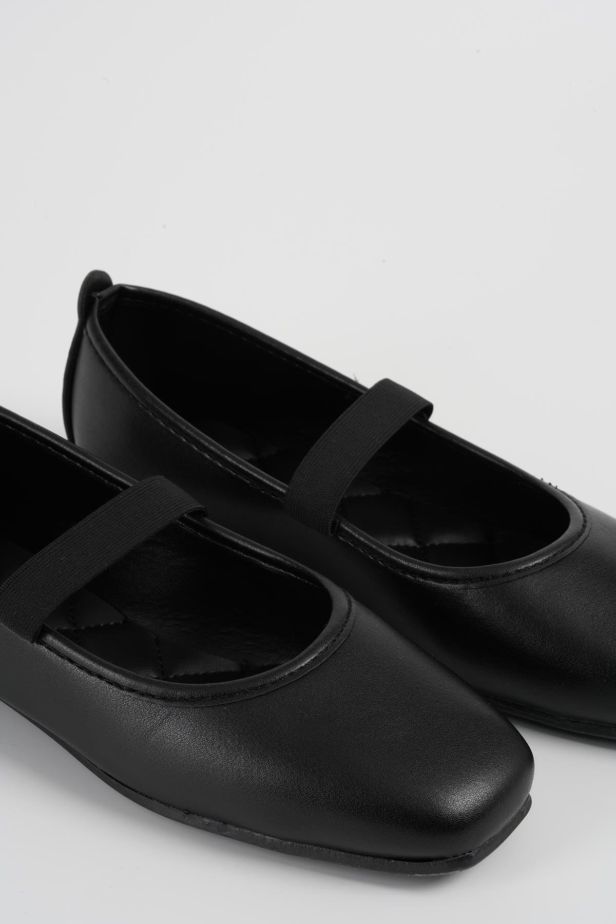 Kadın Siyah Lastikli Deri Günlük Balerin Babet Byndkgz02