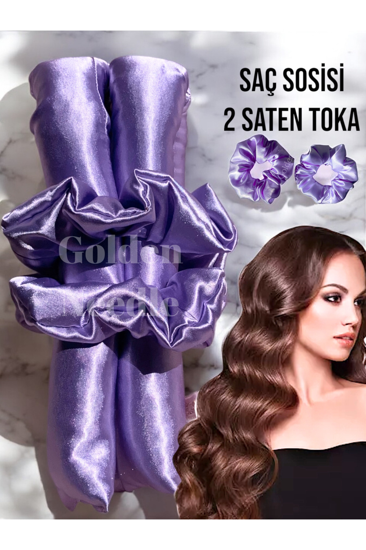 Pudra Pembe Renk Isısız Saç Şekillendirici Saç Sosisi Saten Toka Seti