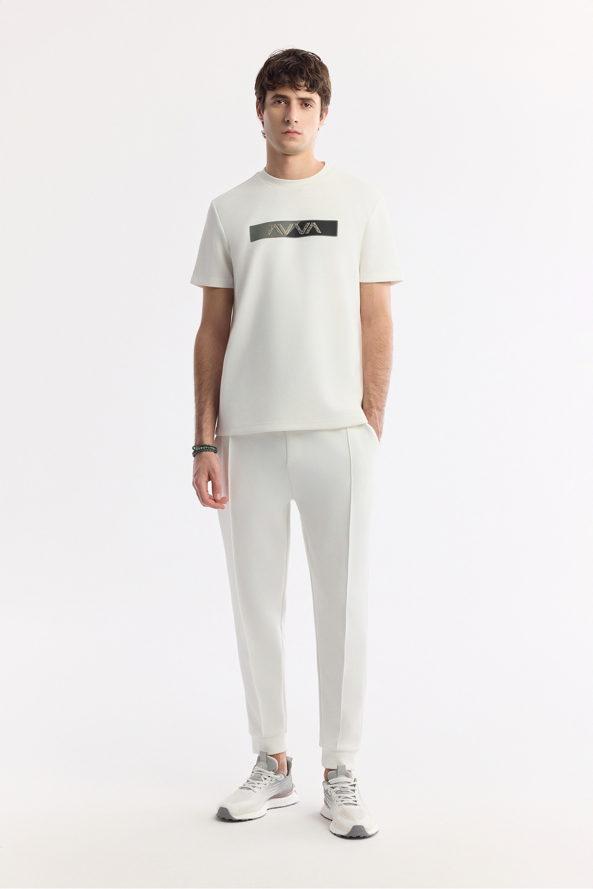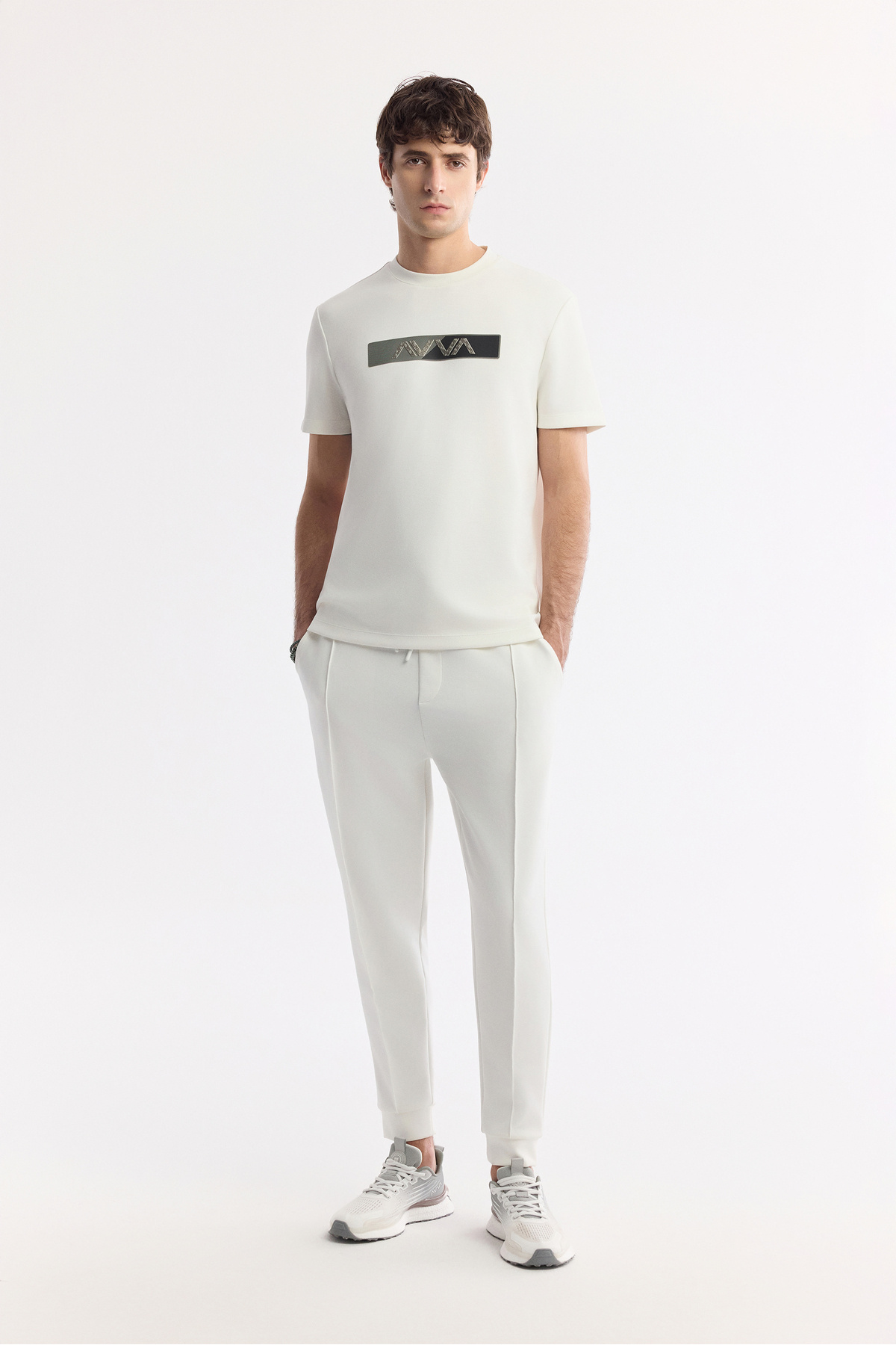 Erkek Ekru Bisiklet Yaka Baskılı Bi-Stretch İnterlok Regular Fit T-Shirt A51Y1089