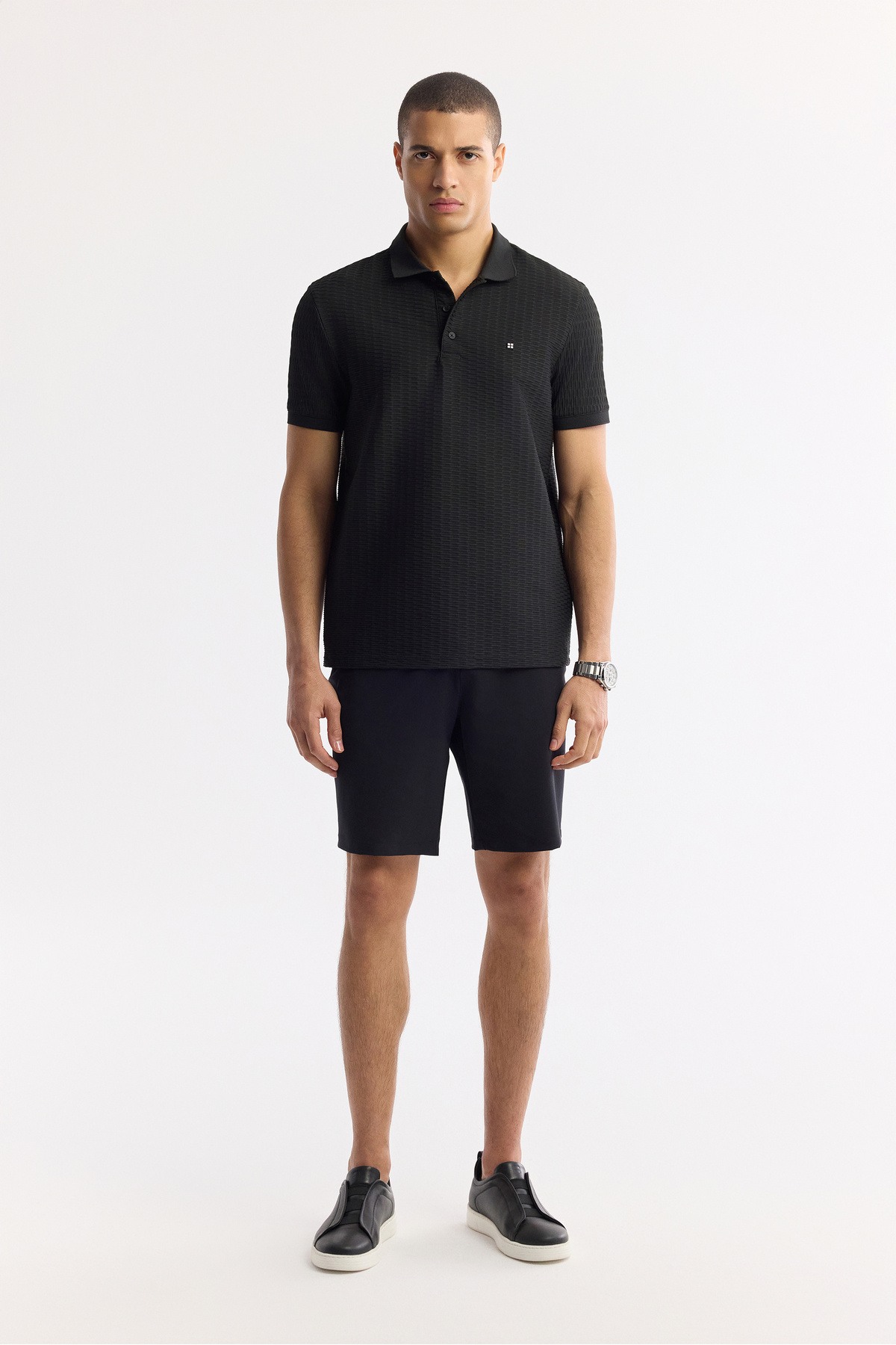 Erkek Siyah Polo Yaka Jakarlı Elastan Regular Fit T-Shirt A51Y1121