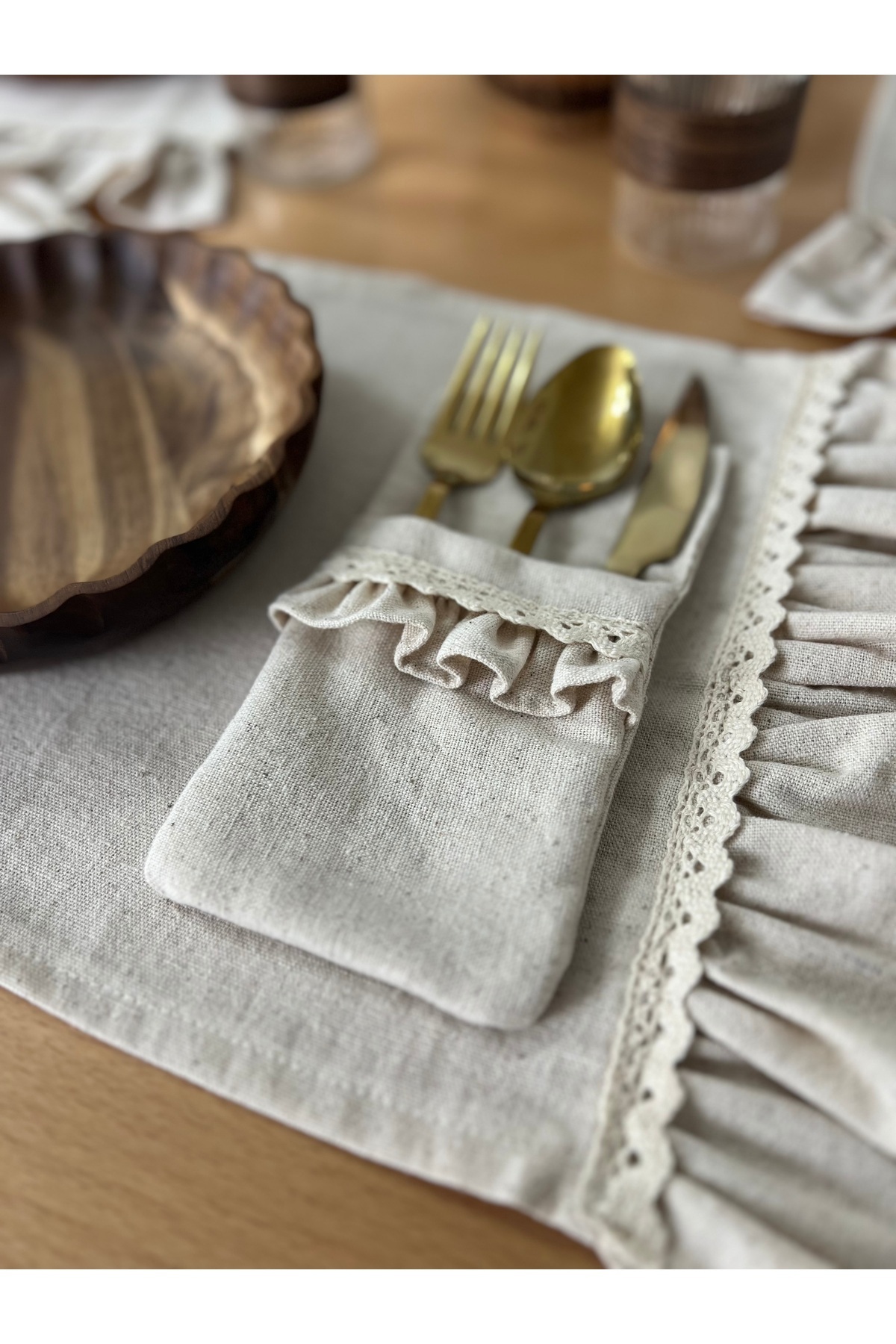 Doğal ve Şık Sofralar İçin Ham Keten Kaşıklık Seti!