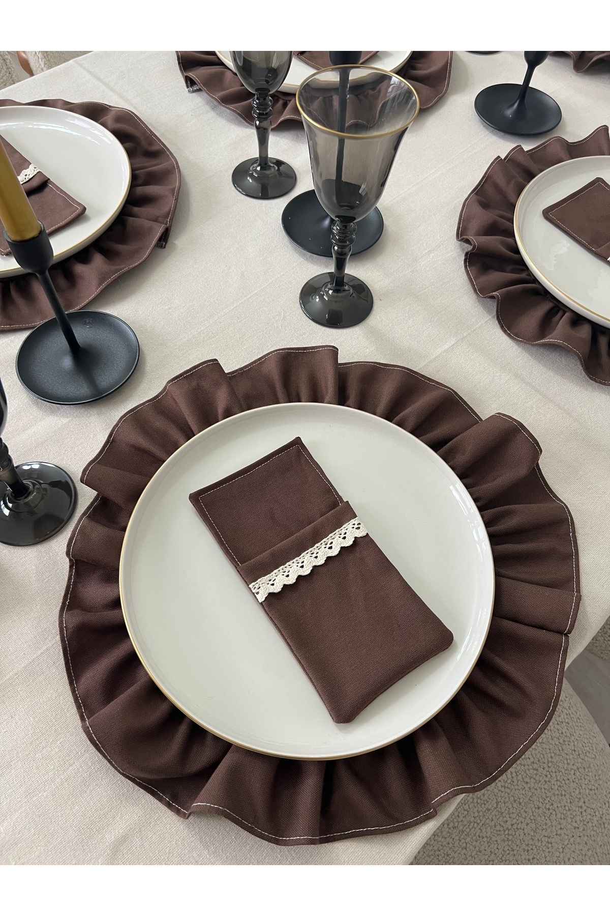 Fırfırlı ve şık tasarımıyla sofralarınıza zarif bir dokunuş ekler.