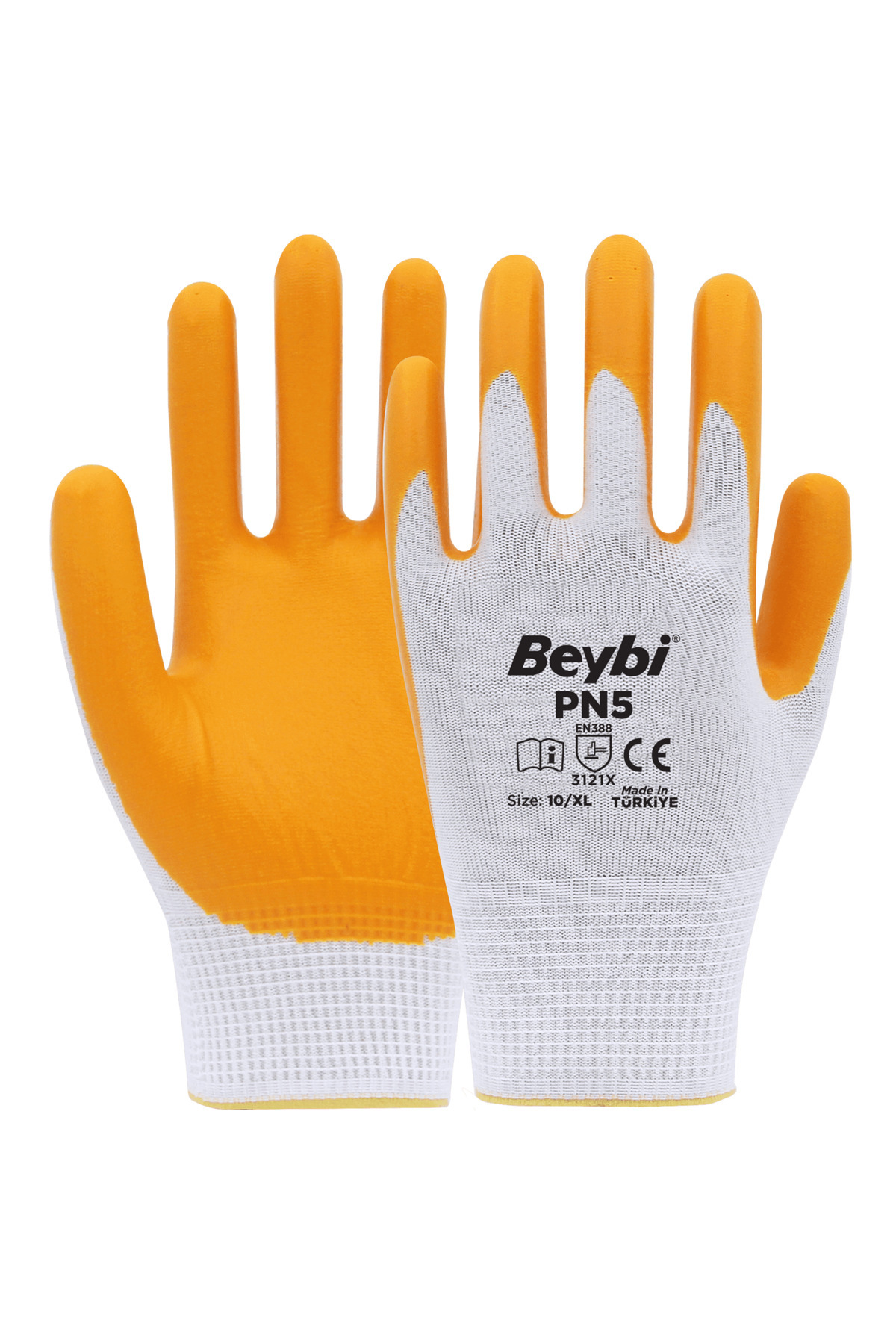 Polyester iplikten örülmüş ve nitril ile yarı kaplanmış, iş eldiveni.