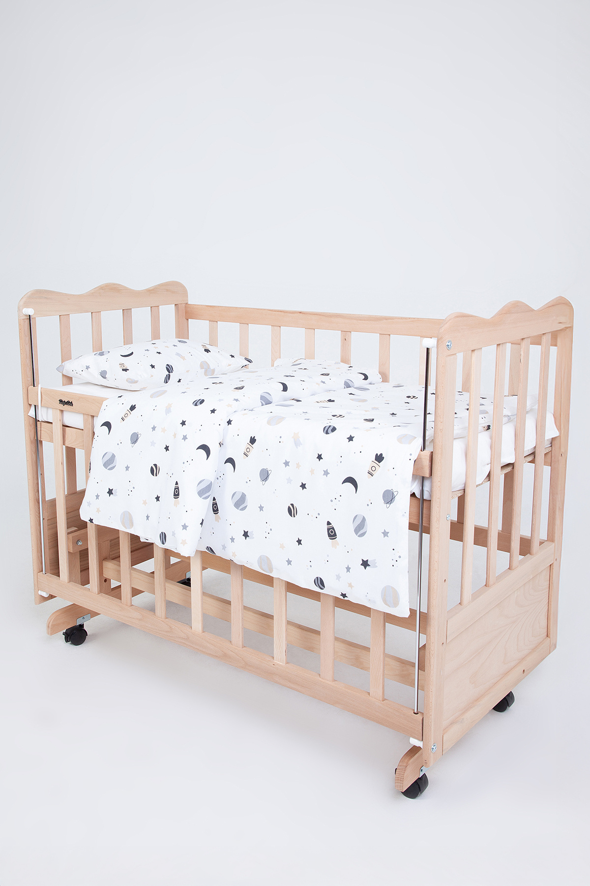 - Sade ve şık görünümüyle her bebek odasına uyum sağlayan düz deseniyle estetik bir atmosfer oluşturur.