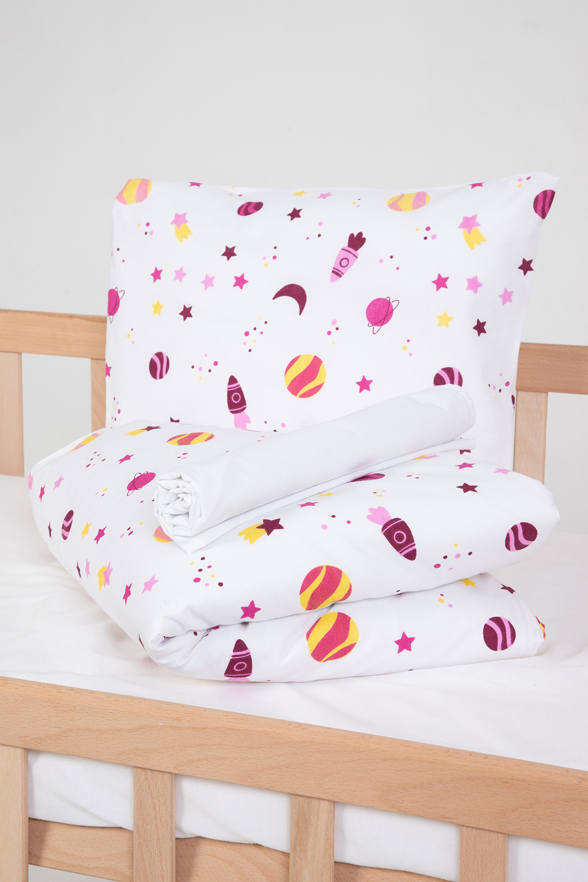 Ölçüler: Yorgan Ölçüsü : 100×150 cm 1 adet Çarşaf Ölçüsü : 100×150 cm 1 adet Yastık Ölçüsü : 35×50 cm 1 adet
