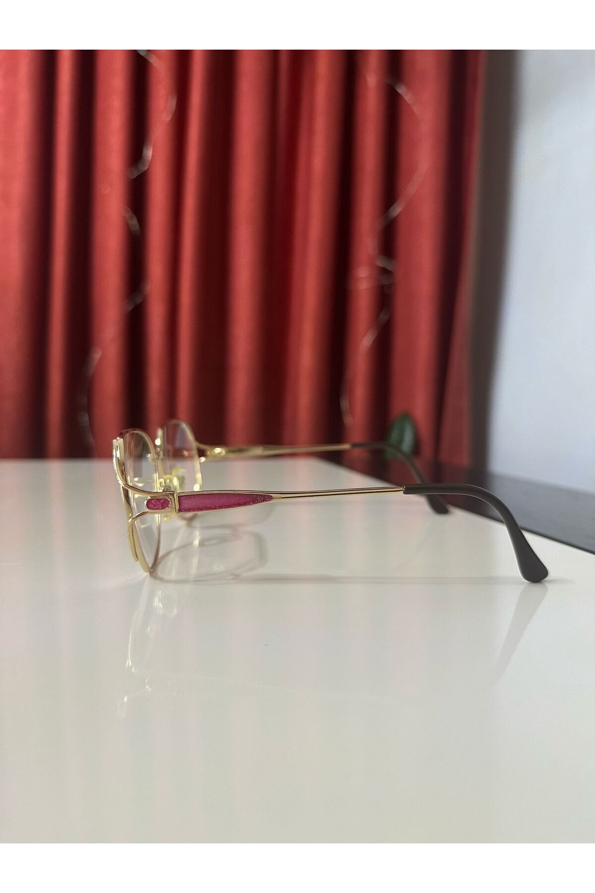 Gözlük Çerçevesi Kare Model – Unisex Altın Sarısı Pembe İşleme Saplı Gözlük