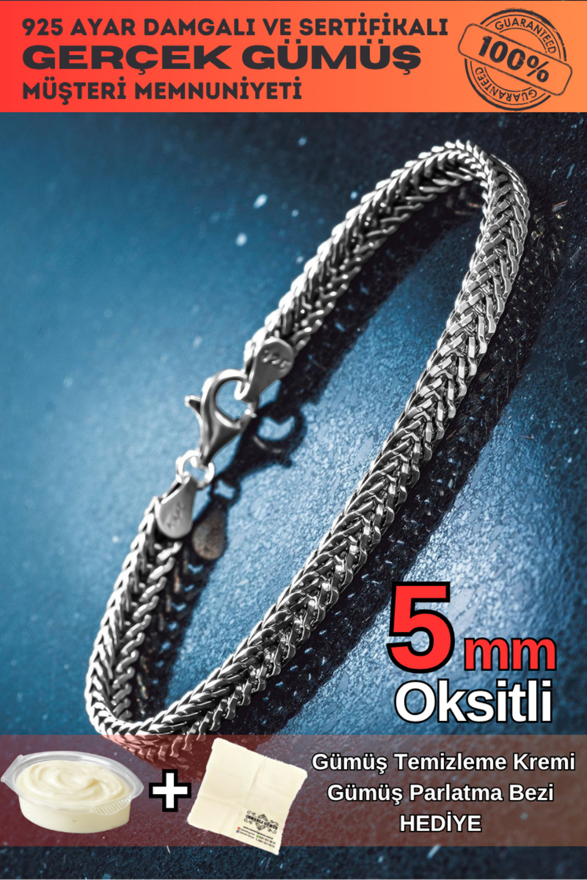 Erkek Gümüş Bileklik - 3.5mm Yassı Beyaz Tilki Kuyruğu Zincir Gümüş Erkek Bileklik