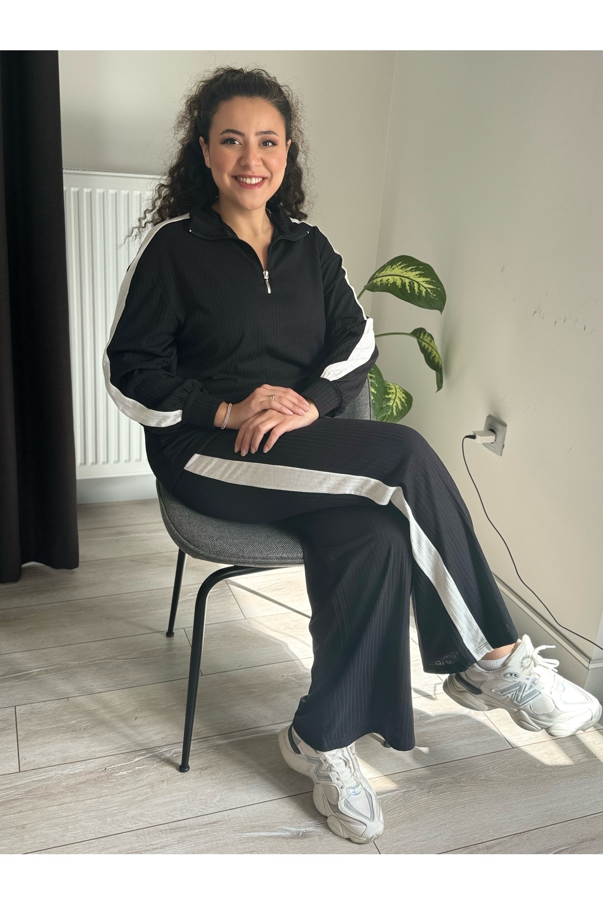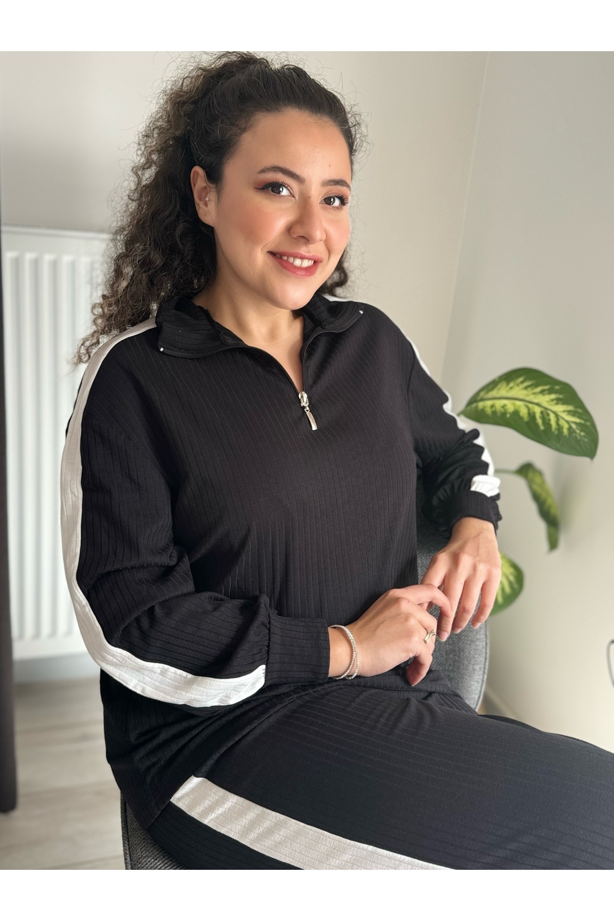 - Rahat ve şık bir görünüm için tasarlanmış, büyük beden kadın takım.