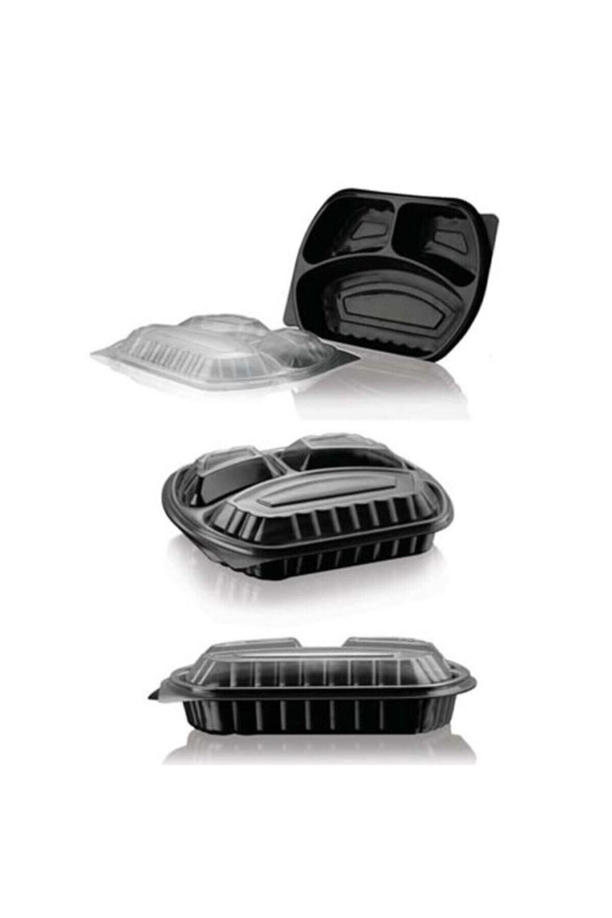 21 cm eninde, 25 cm boyunda, 5 cm derinliğinde siyah renkte, plastik, mikrodalgaya girebilen, ısıya dayanıklı, şeffaf kapaklı, kullan at 3 bölmeli sıcak servis setidir.