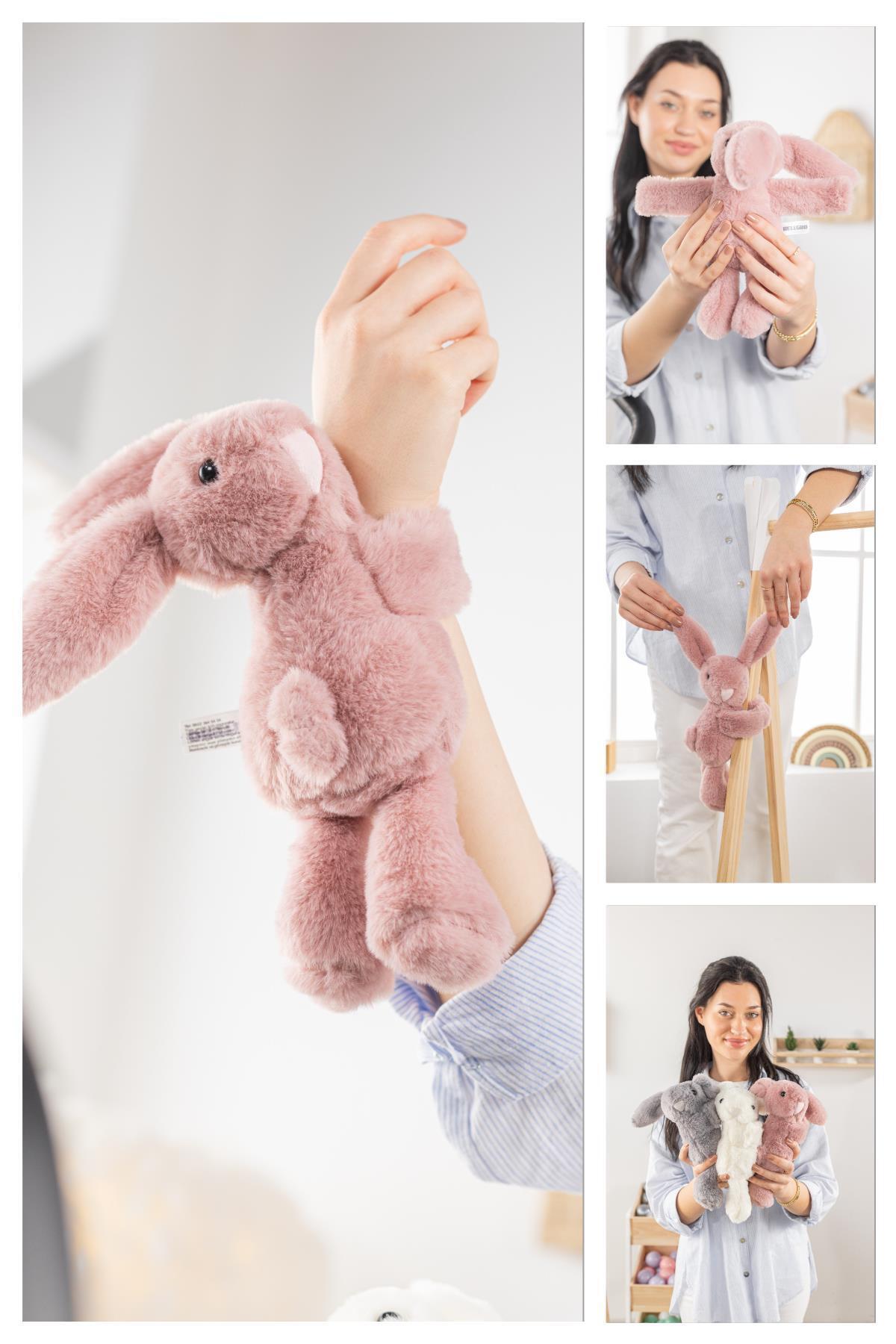 26 x 26 xm boyutlarında olan sevimli tavşan oyuncağımızı perde, çanta, bebek arabası, beşik, anakucağı, askı, merdiven, kapı kolu, saksı çiçekleri gibi bir çok yere takarak çocuğunuzun ortamına renk katabilirsiniz. Kol kısmında yer alan özel plastik kapandığında sıkıştırma sağlar.