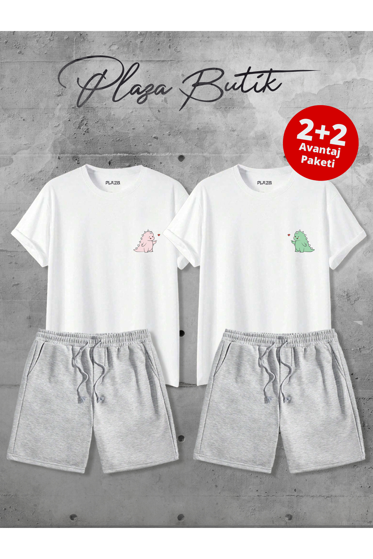 - Dino baskısı ile dikkat çeken ikili sevgili kombini, şıklığı ve rahatlığı bir arada sunar.