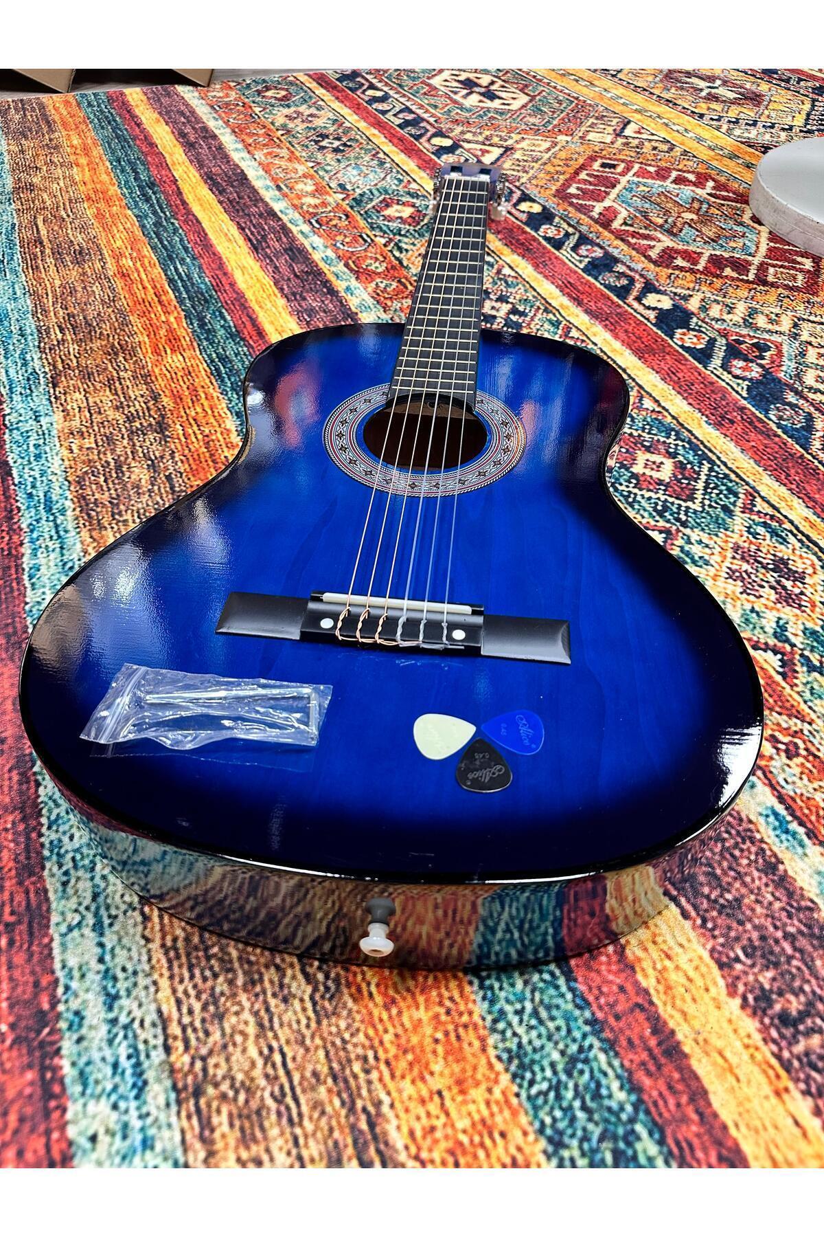 Sap Ayarlı 4/4 Tam Boy Mavi Klasik Gitar Seti(KILIF-PENA DAHİL)