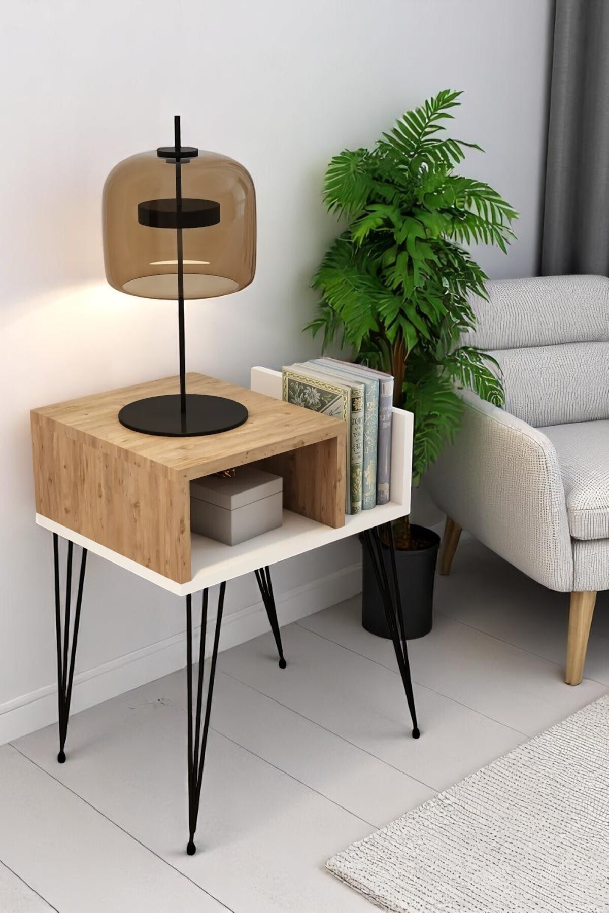 Begonya Koltuk Yanı Sehpa - Raflı, Gazetelik, Süslük, Kitaplık, Dergilik ve Metal Ayaklı Şık Sehpa