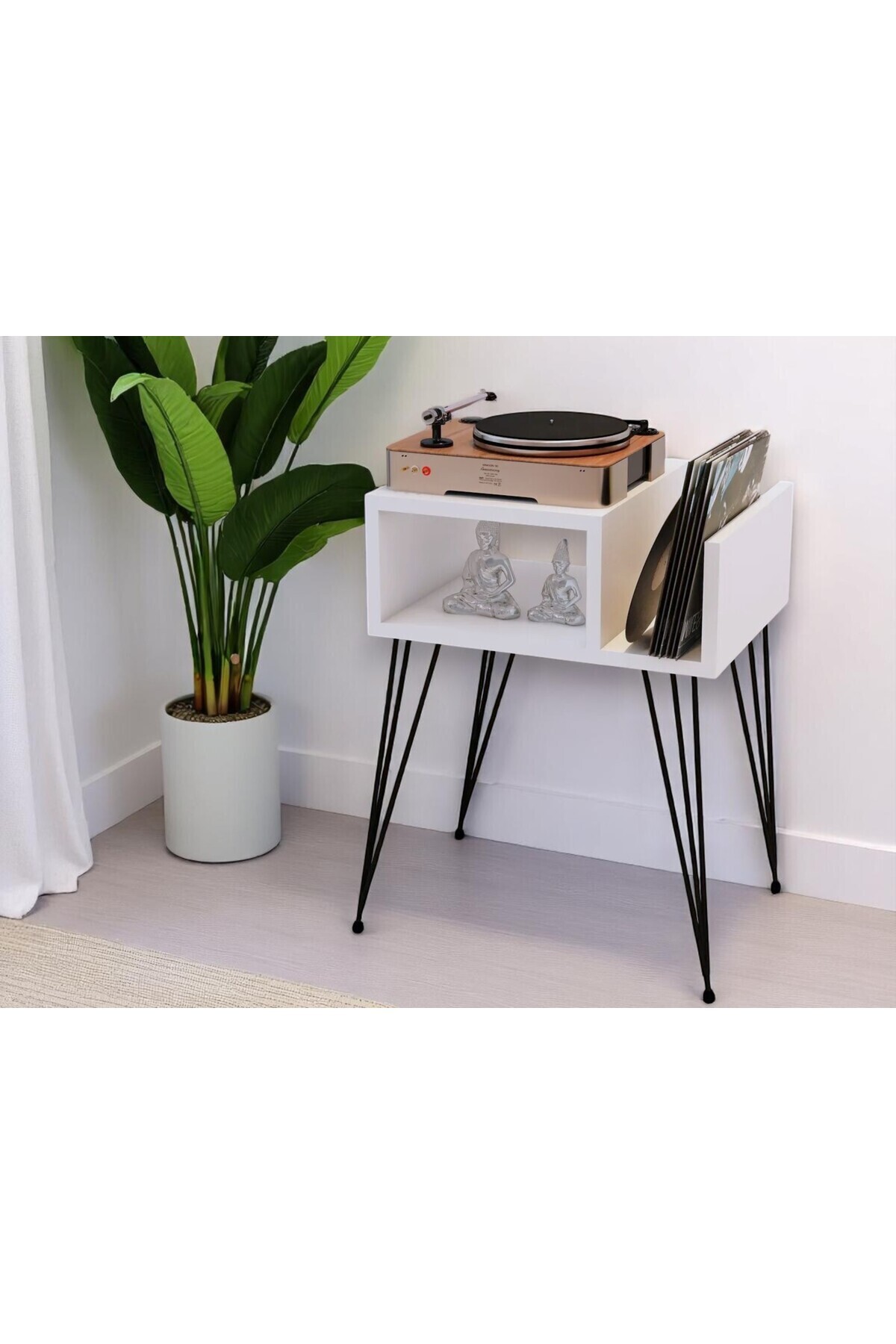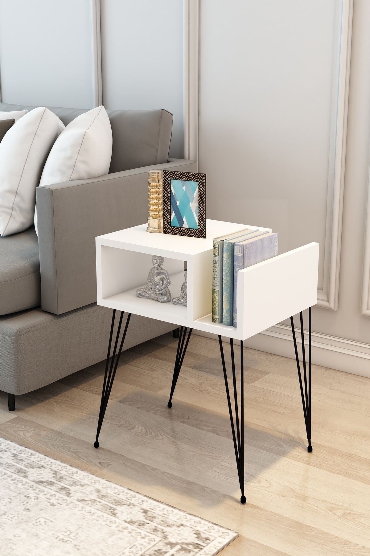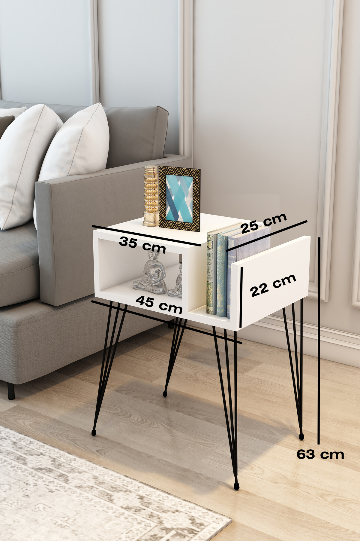 Begonya Koltuk Yanı Sehpa - Raflı, Gazetelik, Süslük, Kitaplık, Dergilik ve Metal Ayaklı Şık Sehpa