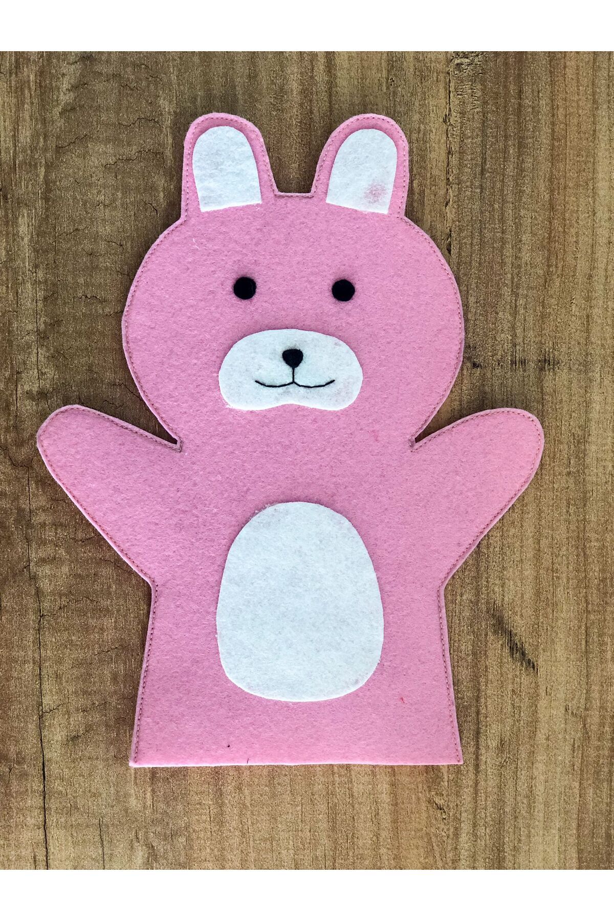 Tavşan Figürlü Pembe El Kuklası - Keçe Eğitici Hayvan Kukla - Özel Tasarımlı