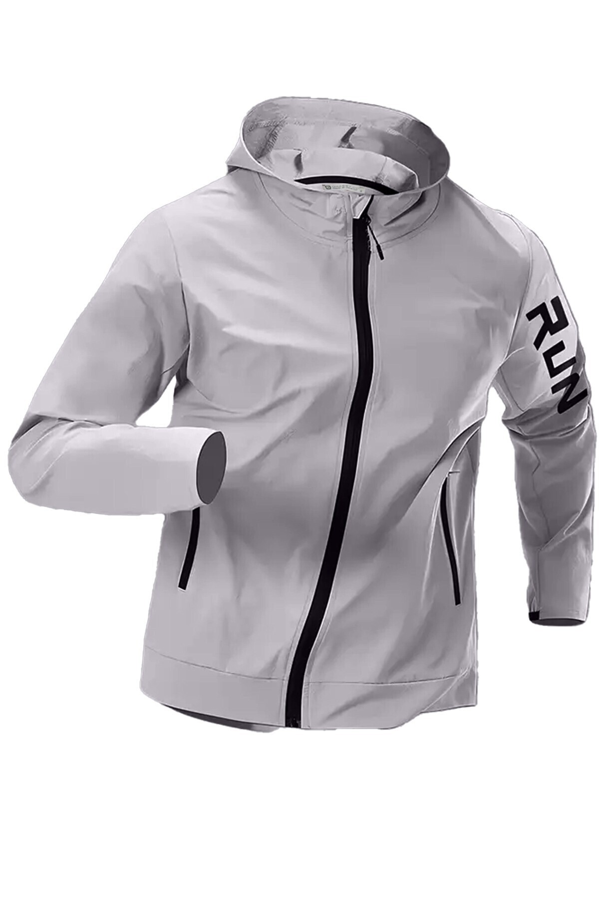 Erkek Sportif Run Baskılı Rüzgar ve Su Geçirmez File Astar Yürüyüş Spor Fitness Yağmurluk