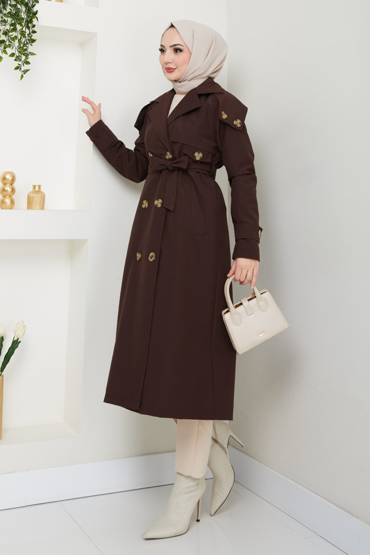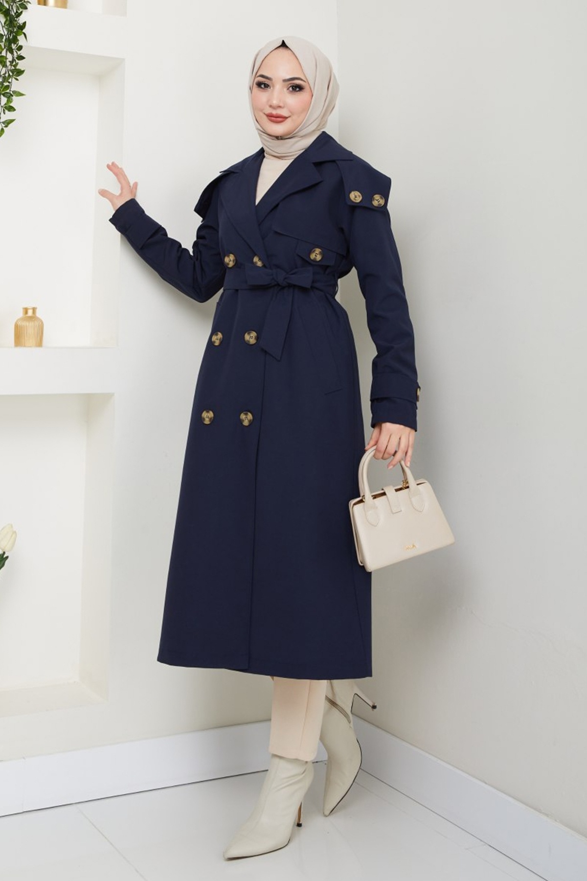 Omuzları Apolet Detaylı Astarlı Siyah Trençkot