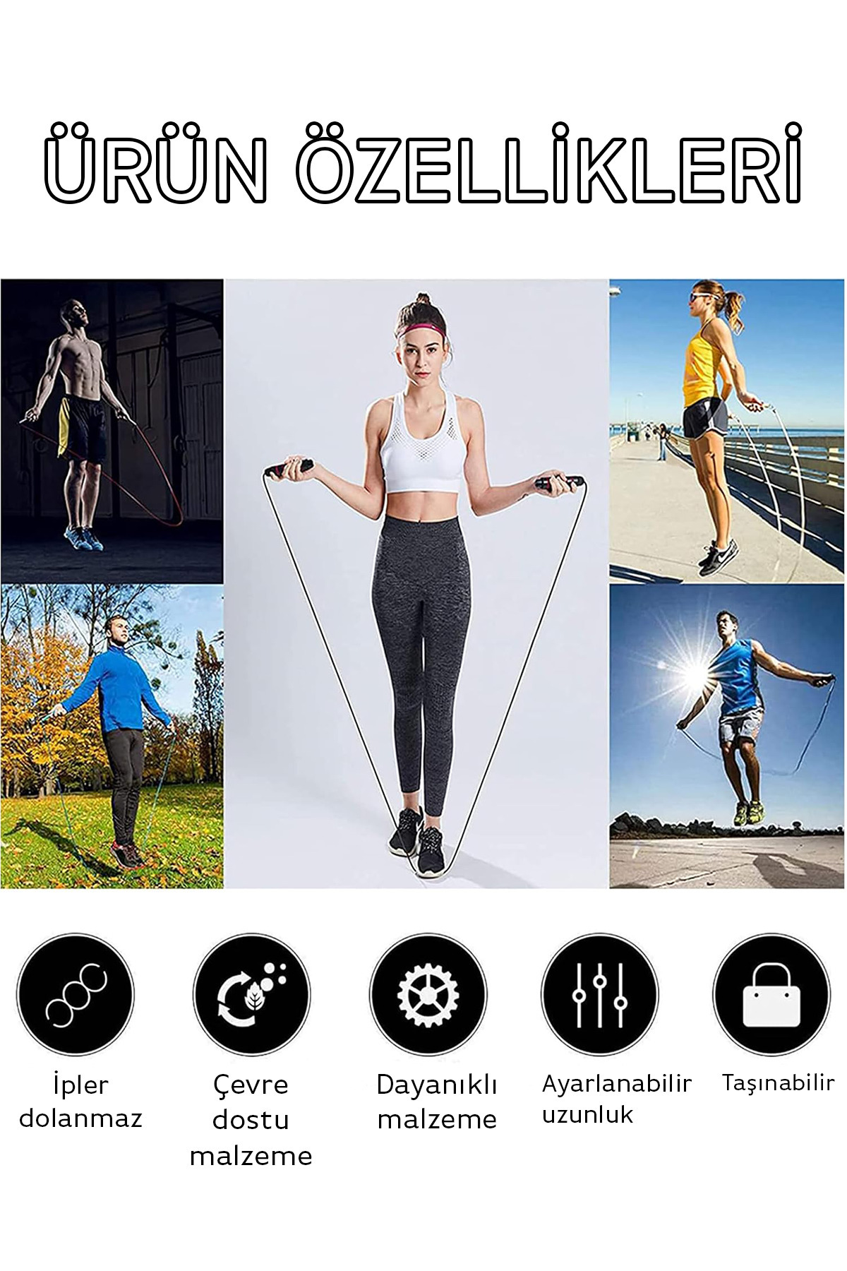 Ekstra konforlu ve güçlü tutuş için hafif, nefes alabilen ve ergonomik saplarla üretilen spor salonu atlama ipi.