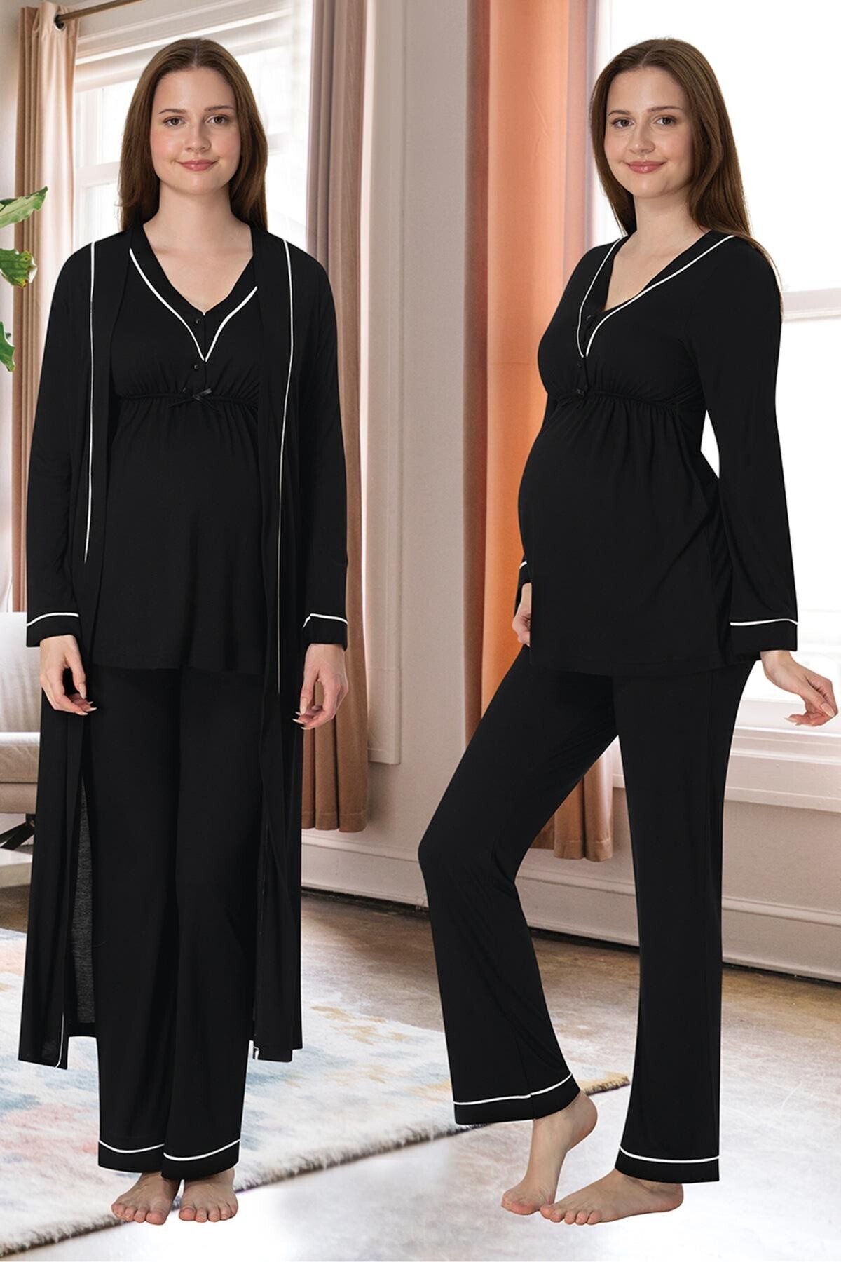 - Siyah renk seçeneğiyle şıklığı ve zarafeti evinize taşıyan lohusa hamile pijama takımı, her zaman moda olmanın keyfini yaşatır.