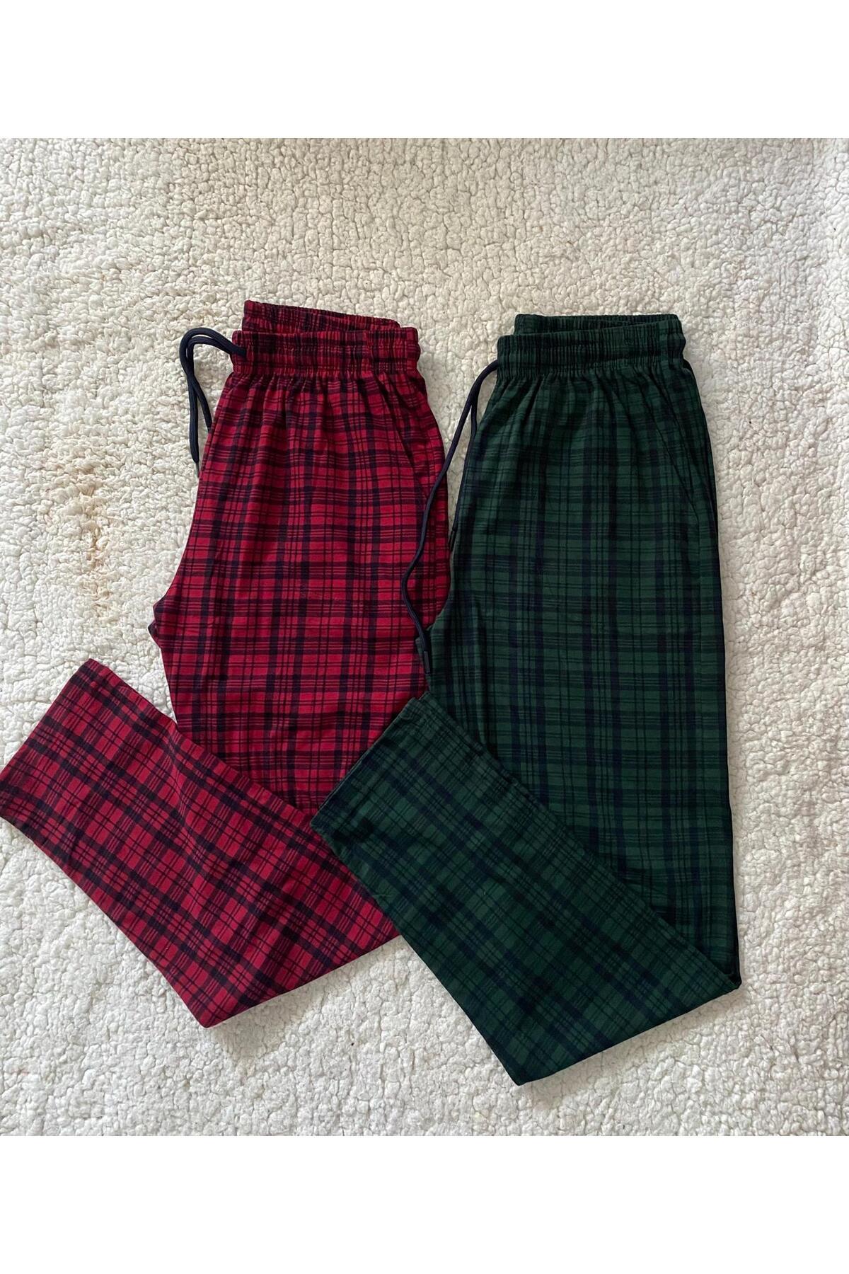 %100 Pamuk Kareli / Ekose Desenli Cepli Bel Lastikli 2'li Erkek Pijama Altı - Saf Pamuk