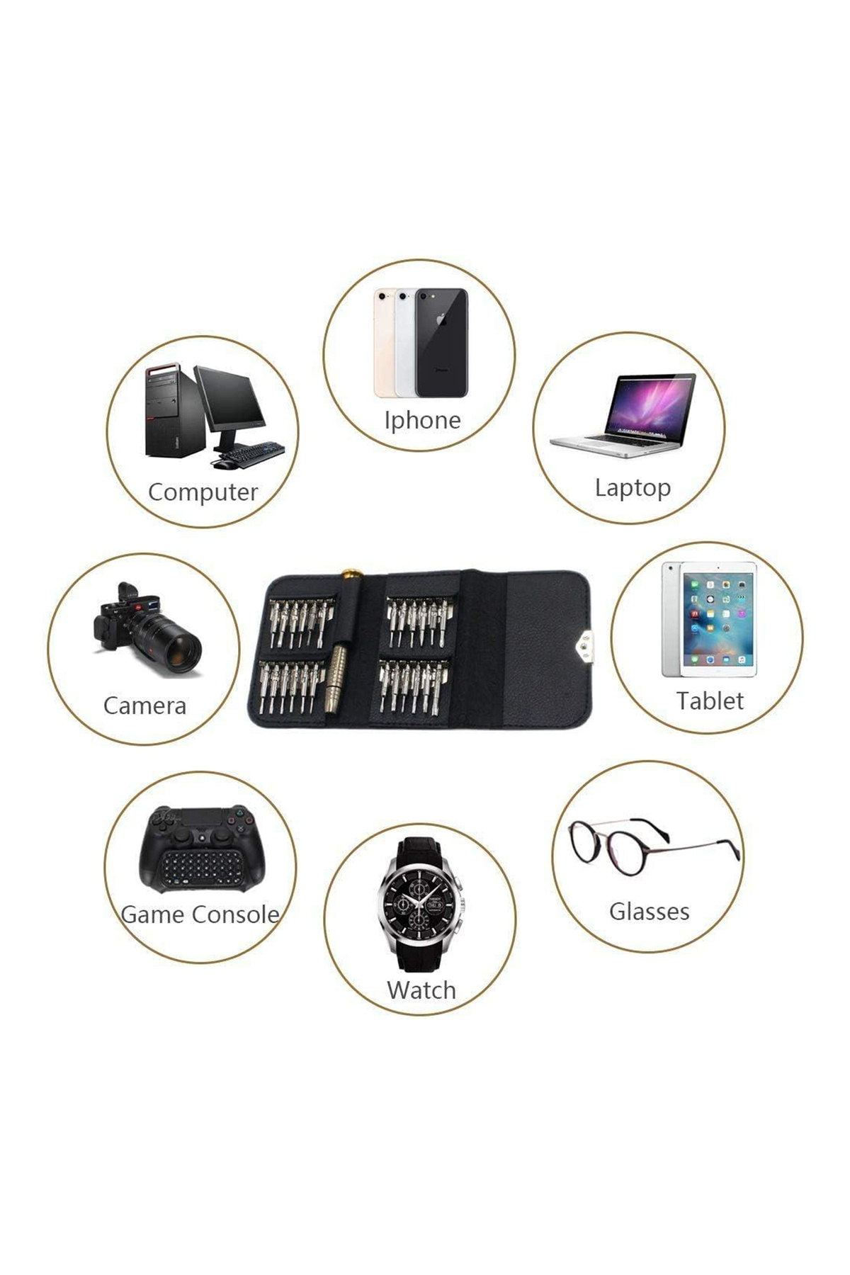 Mıknatıslı Saatçi Tornavida 25 'li Set Tork Yıldız Düz Üçgen İnce uç Küçük Vida Tornavidası Çantalı