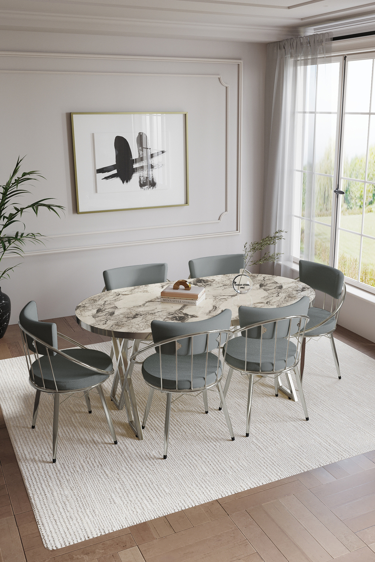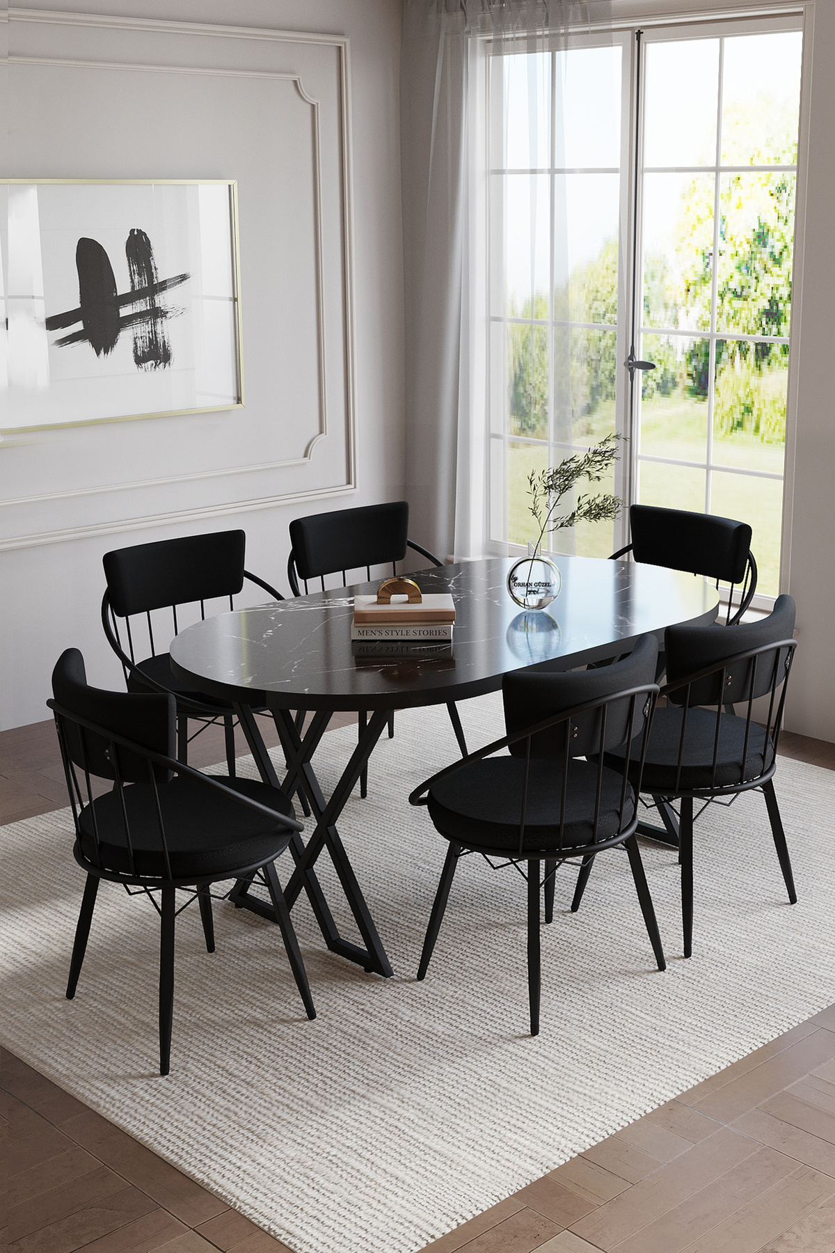 - 6 adet sandalye setiyle geniş konuk kapasitesine sahip olup, misafirlerinizle rahatça vakit geçirebilirsiniz.