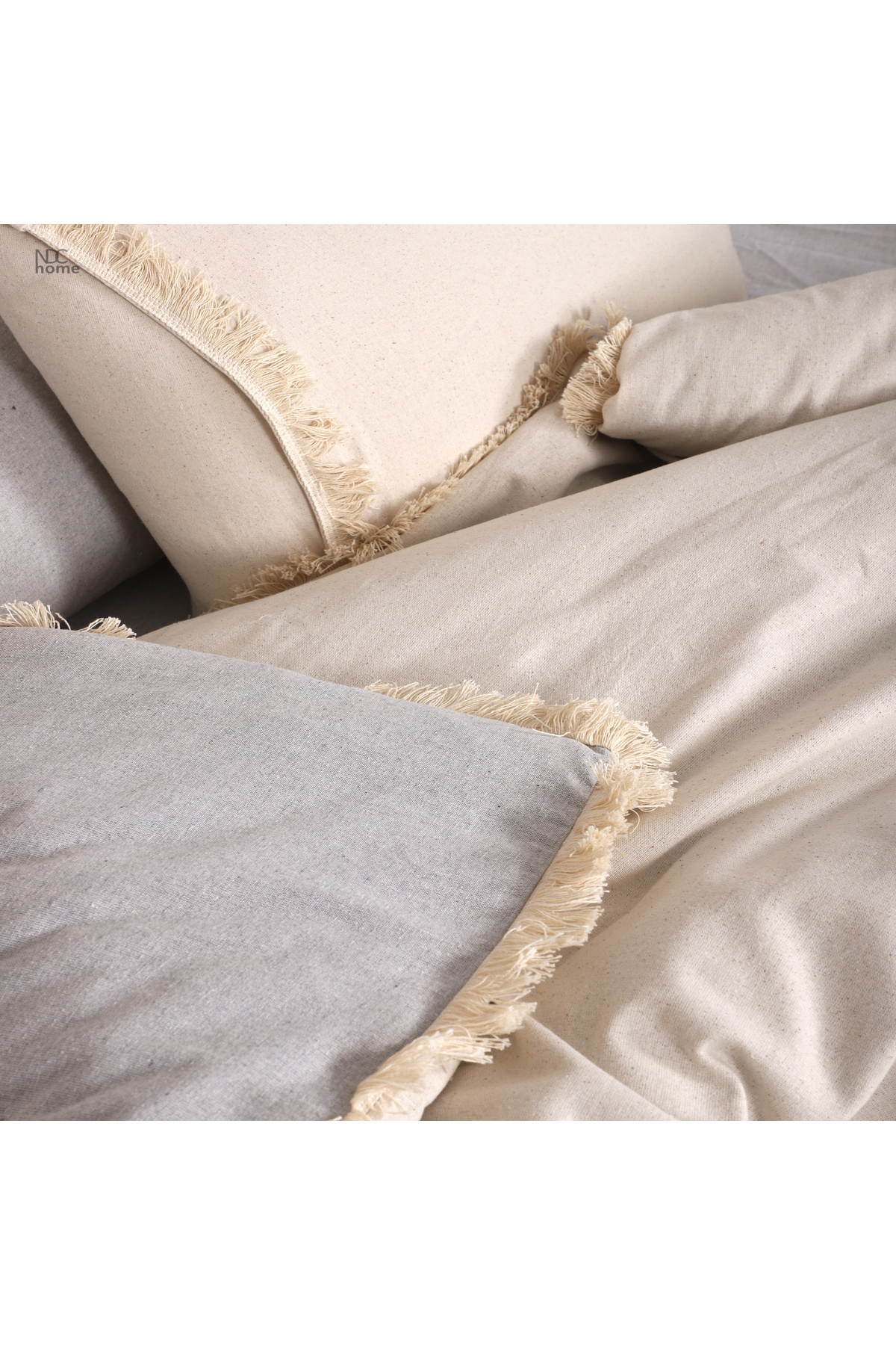 NDC Home Nevresim yastık seti pamuk ve keten karışımıyla üretilmiş olup dikiş detaylarıyla kaliteli bir görünüm sunmaktadır.