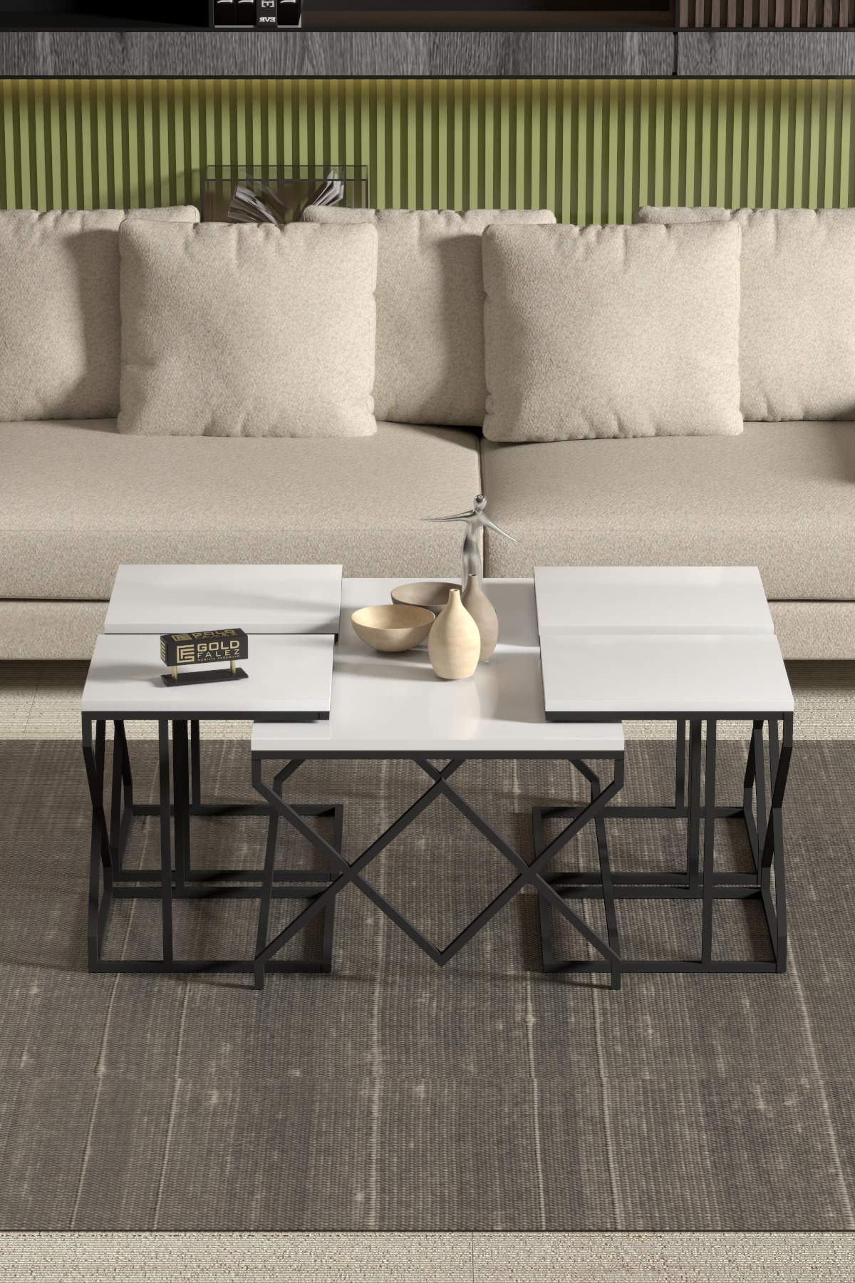 - Kare şekliyle modern çizgilere sahip olan bu sehpa seti, her türlü iç mekana kolayca uyum sağlar.