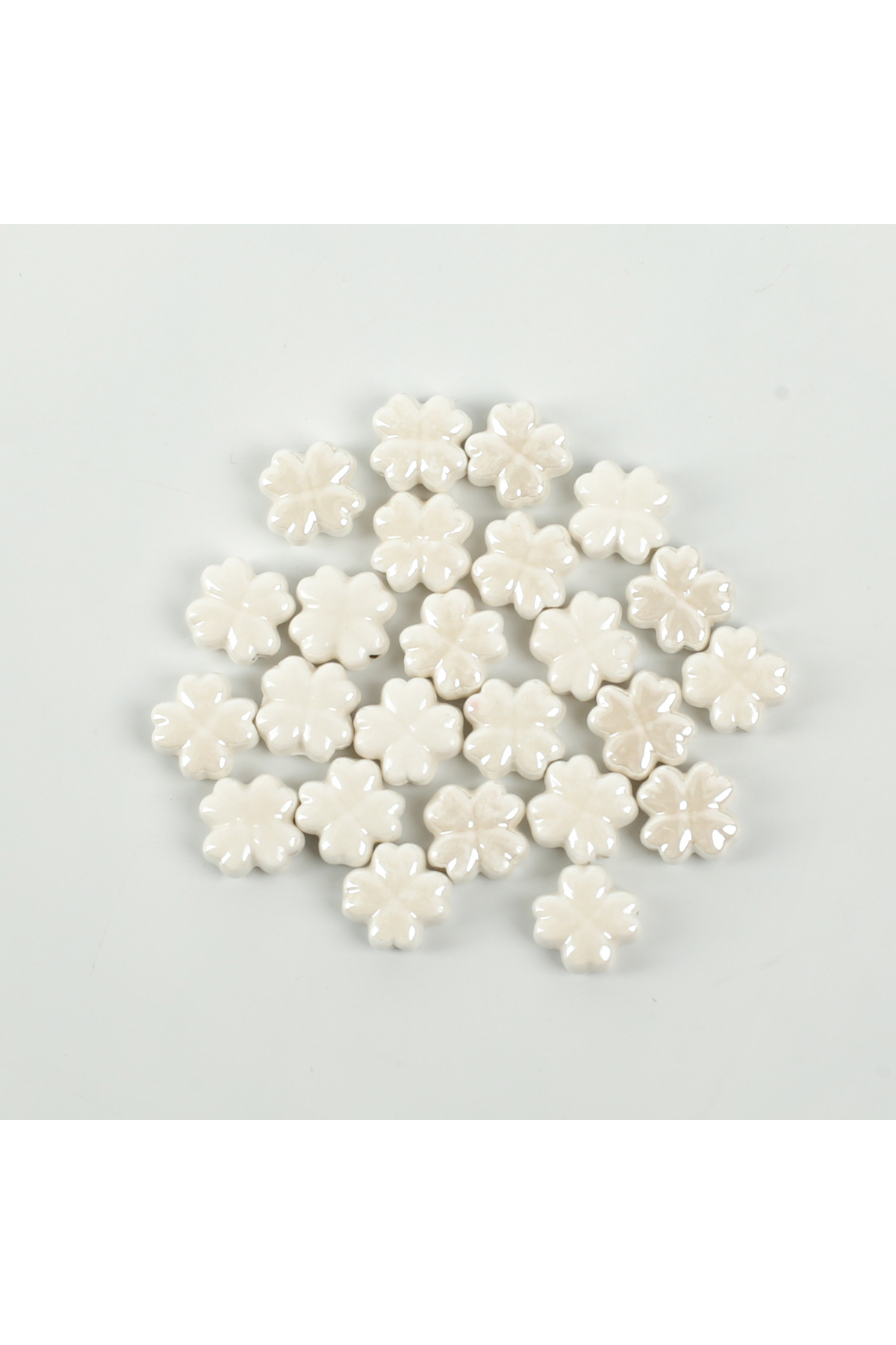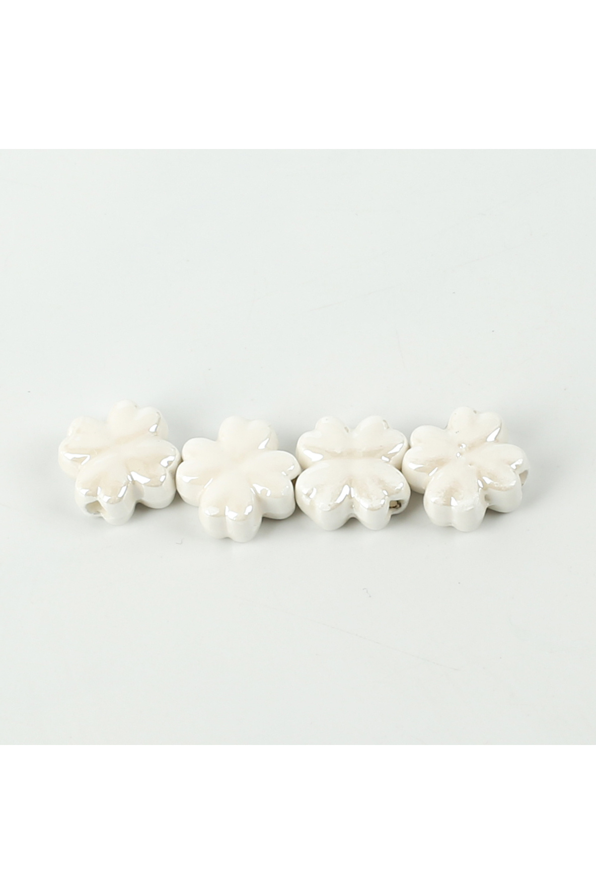 1 Adet - 11 mm Yonca Desenli Porselen Boncuk, Beyaz Renk Porselen Takı Aparatı 1.Kalite