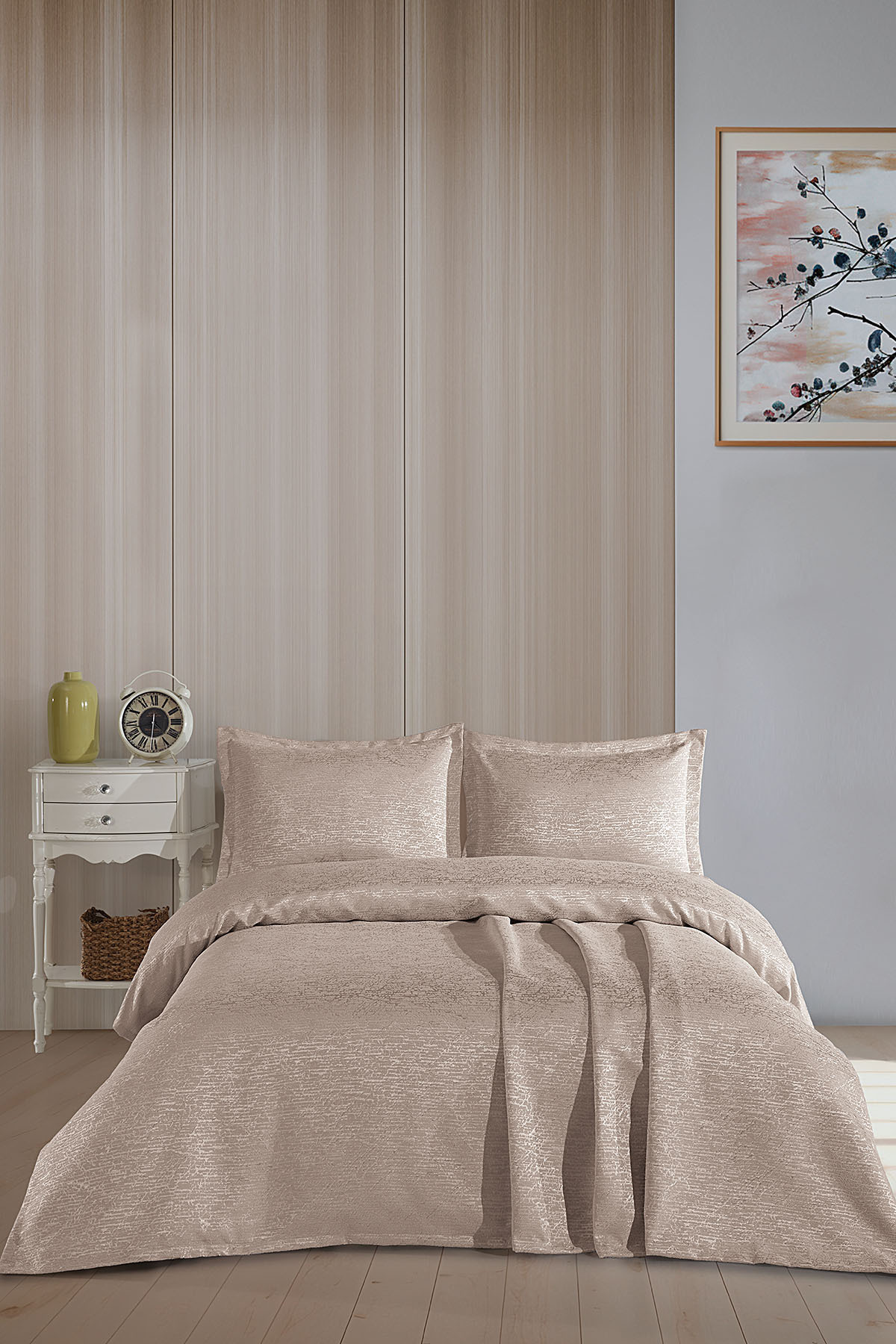 Sarah Jakarlı Şönil Çift Kişilik Yatak Örtüsü (Krem)
