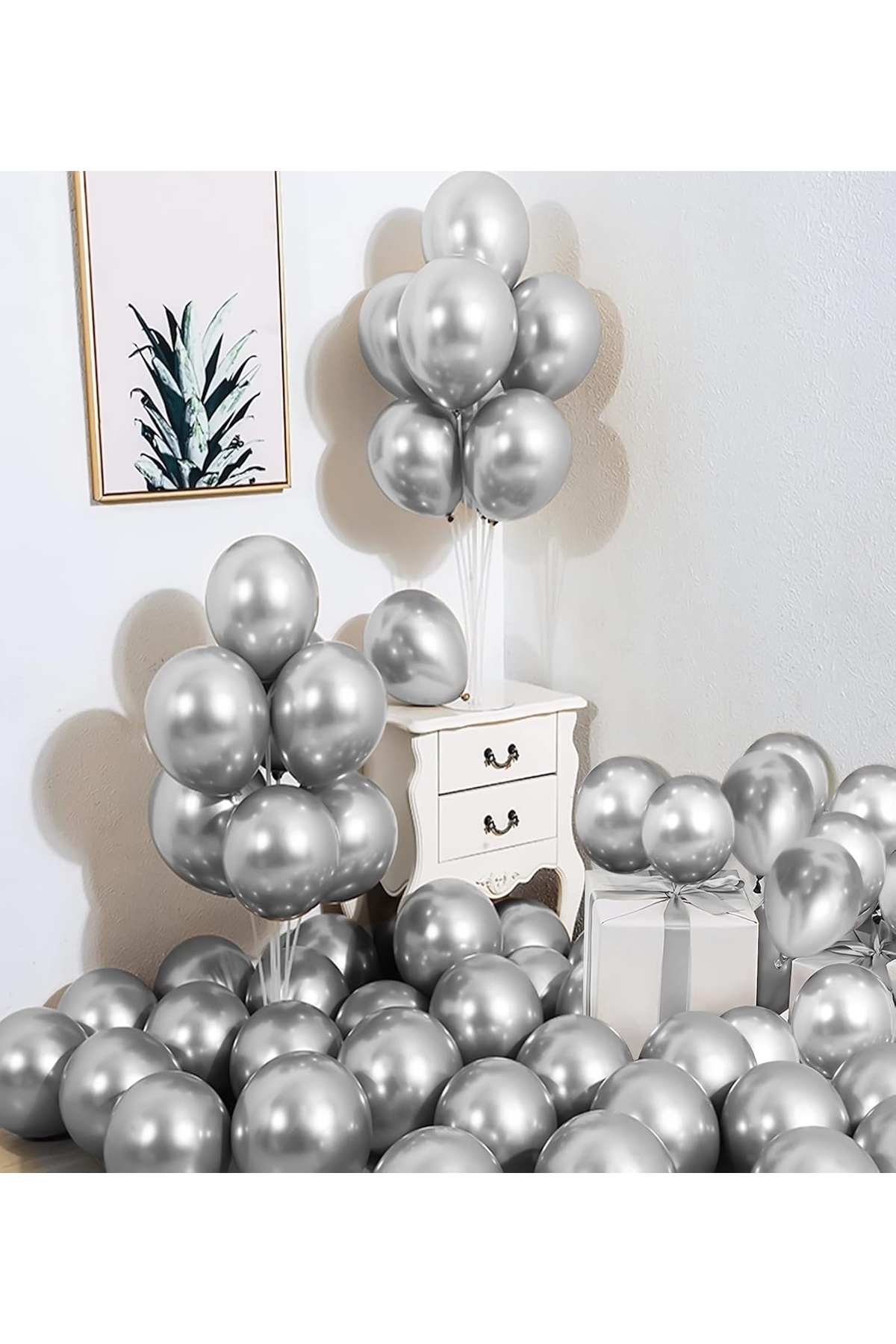 30’lu 12 İnç Metalik Beyaz Balon Seti – Helyum Uyumlu, Parlak ve Şık Parti Balonları
