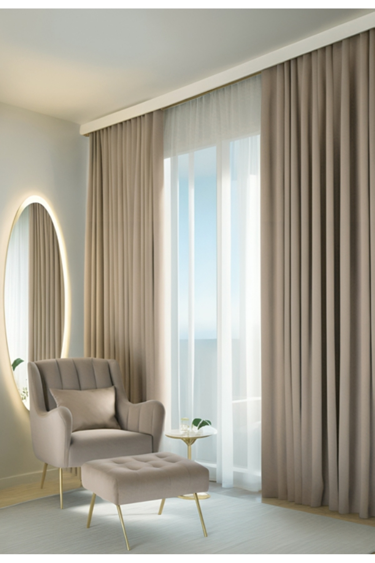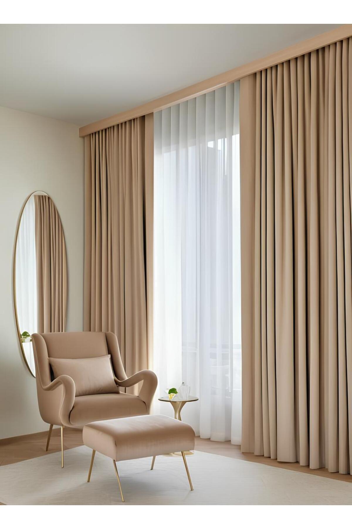 Tek parça halinde gelen bu fon perde, kolay montaj imkanı sunarak pratik kullanım vaat eder