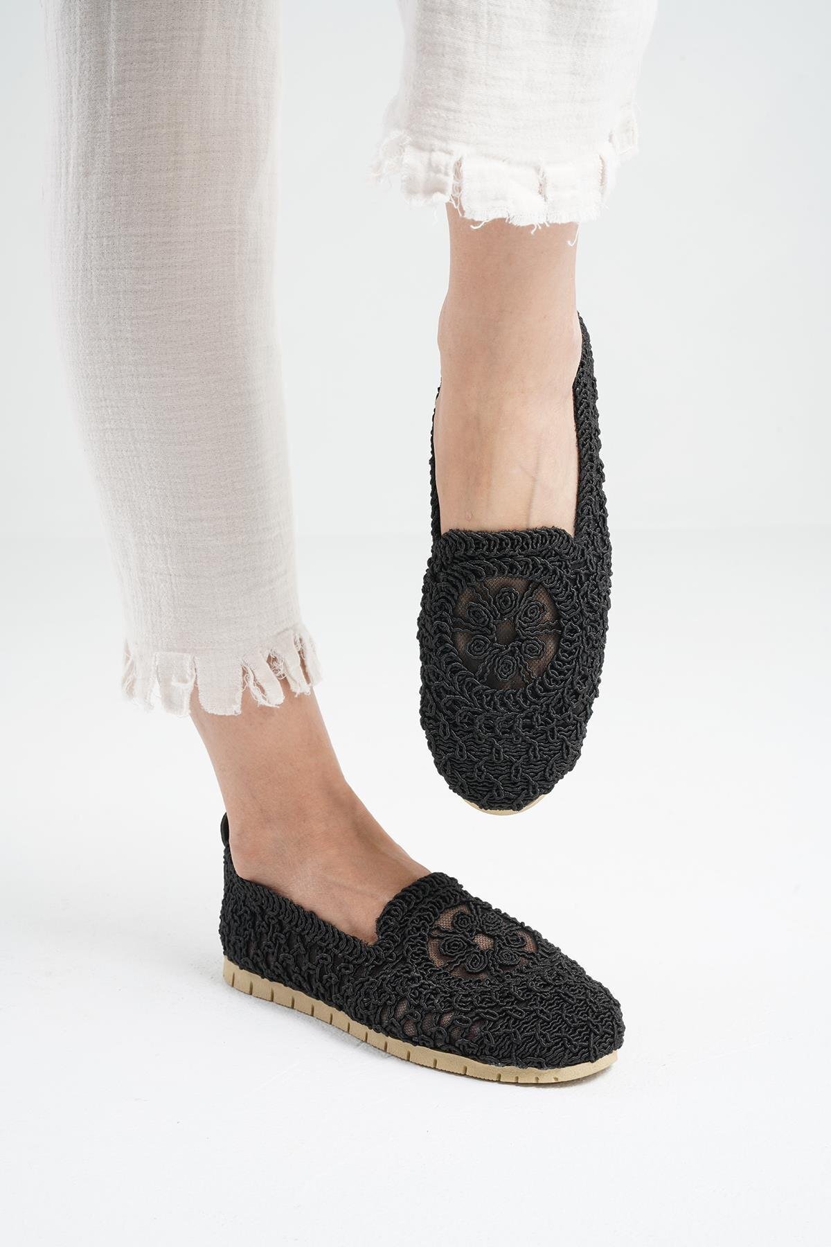 Kadın Vizon Çiçek Nakışlı Hasır Triko Günlük Babet Byndtrb02