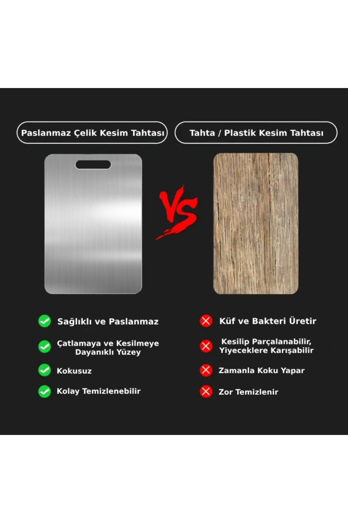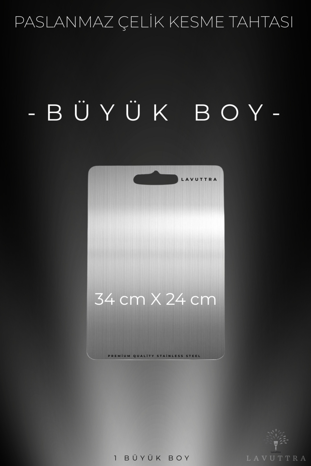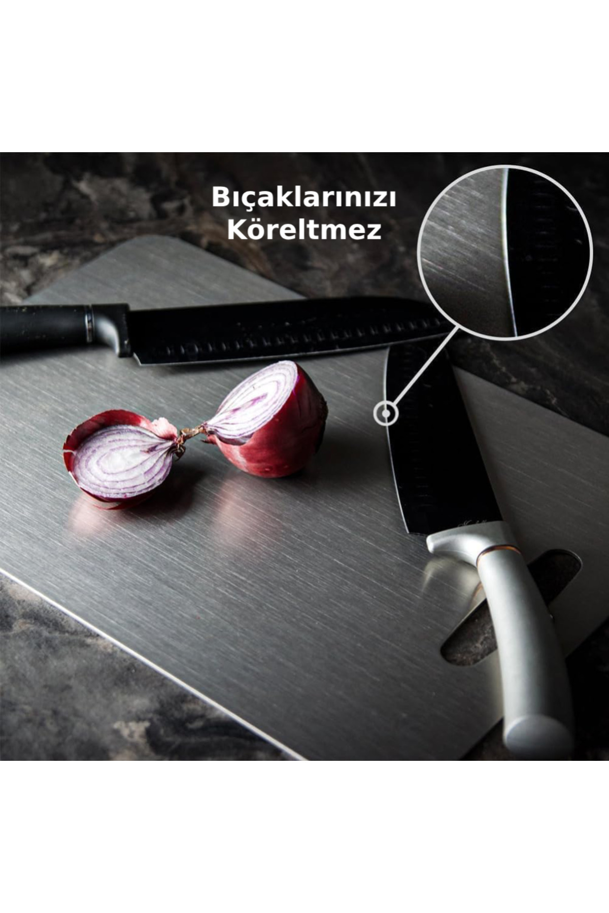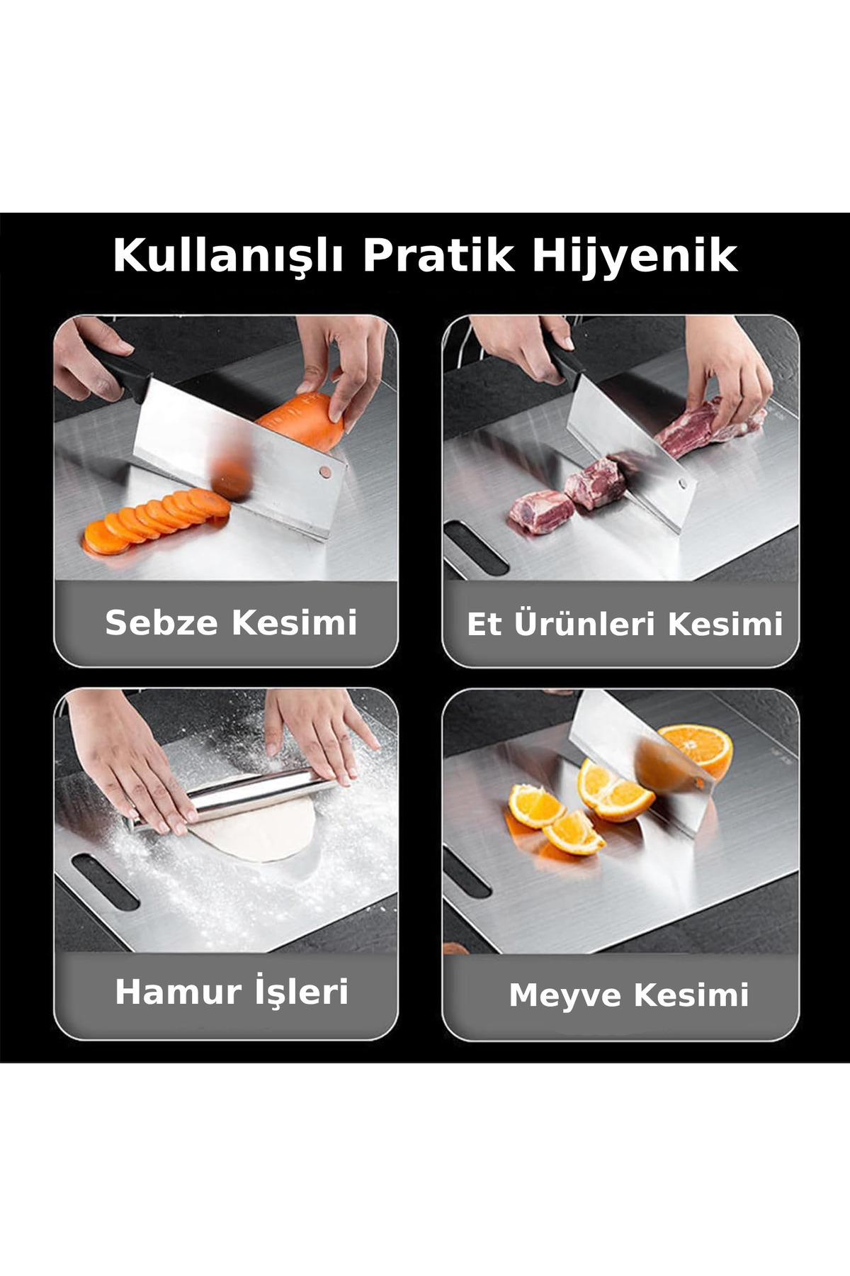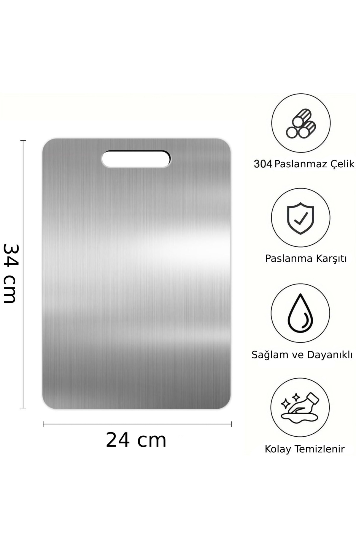34x24 Cm Büyük Boy Paslanmaz Çelik Kesme Tahtası - Antibakteriyel - Leke Ve Su Tutmaz