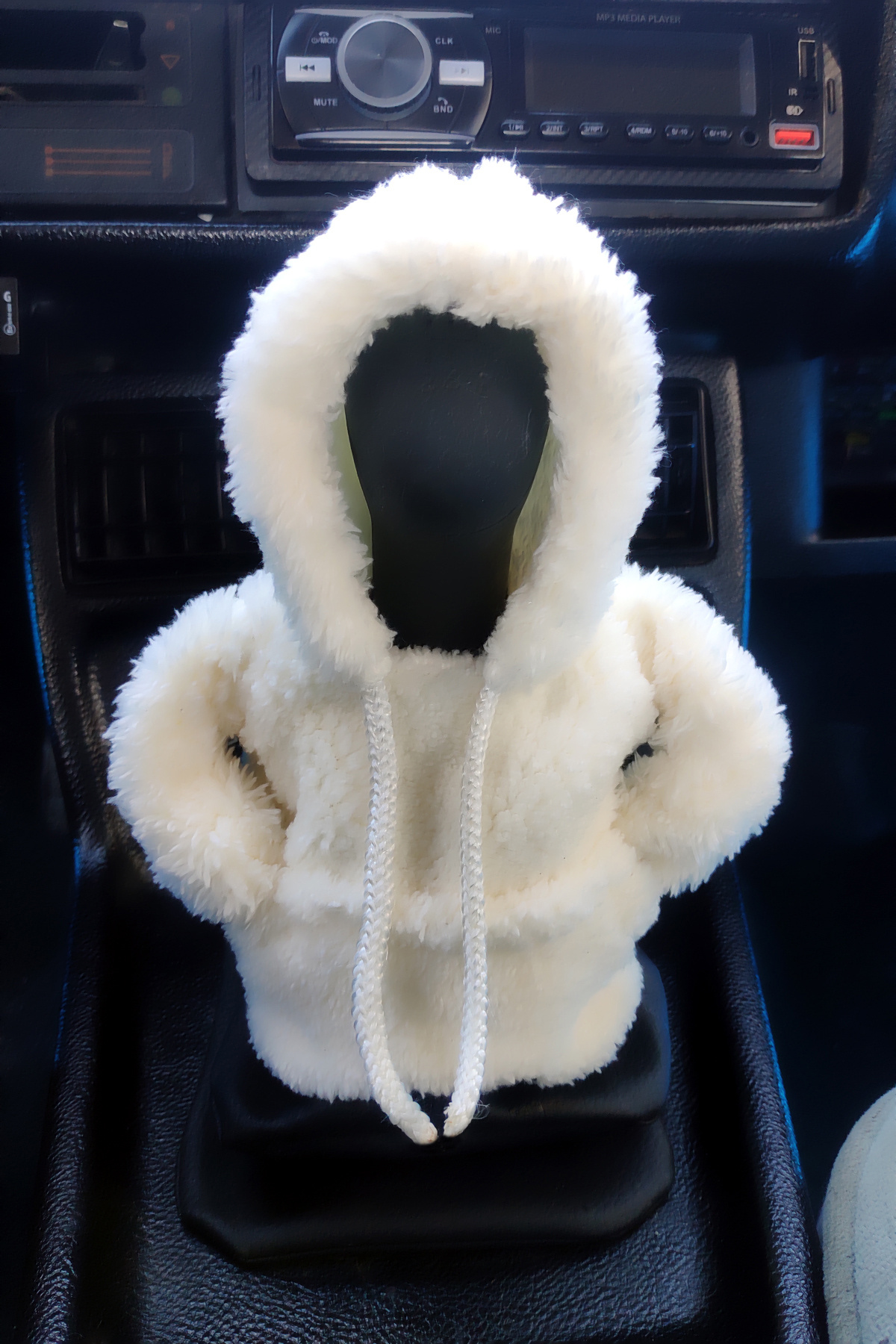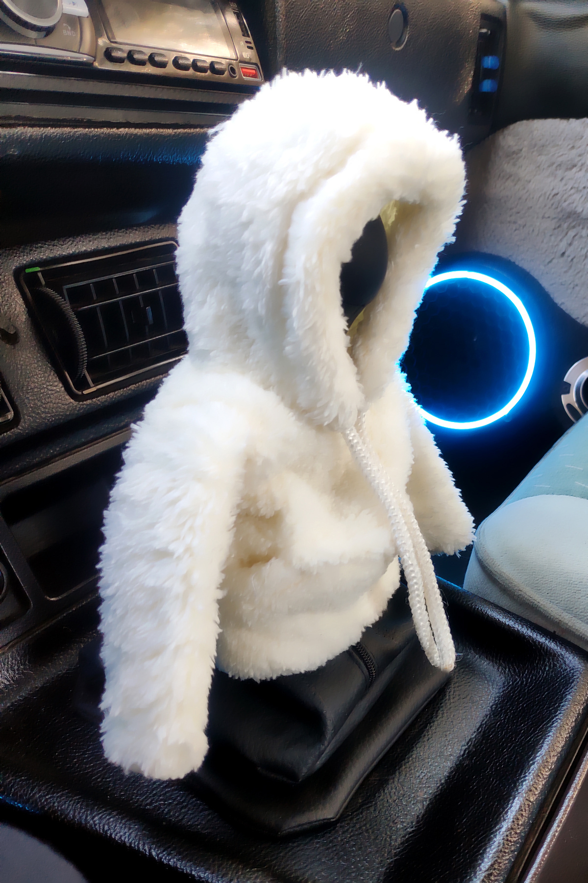 Vites Süsü Ekru Peluş Hoodie Kapüşonlu Araba Vites Topuz Süsü Oto Aksesuarı Vites Topuzu Sweatshirt