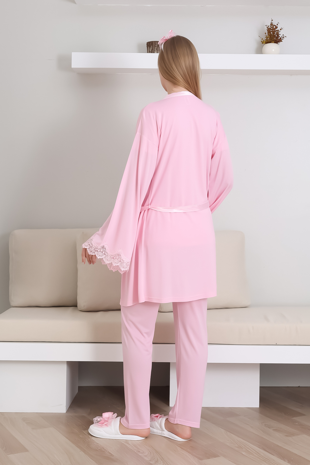 Hamile Kısa Kol Pijama ve Uzun Kol Sabahlık Takım/ Düğme Dantel Yaka ve Kol / Terlik ve Taç Hediyeli
